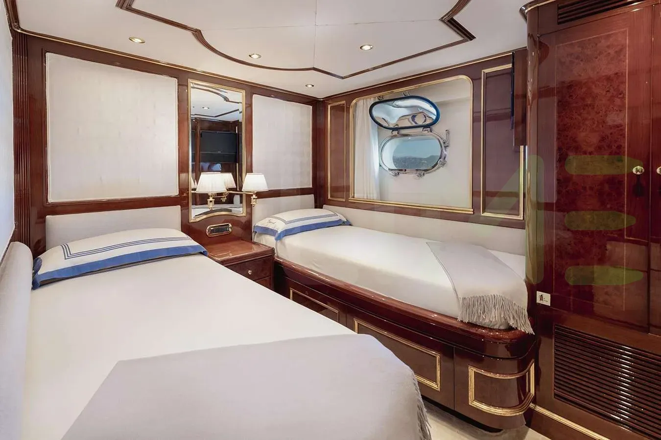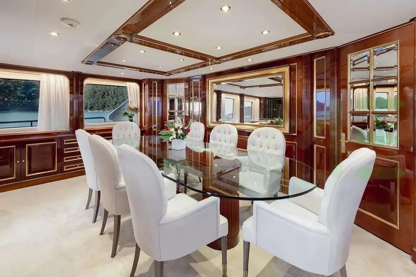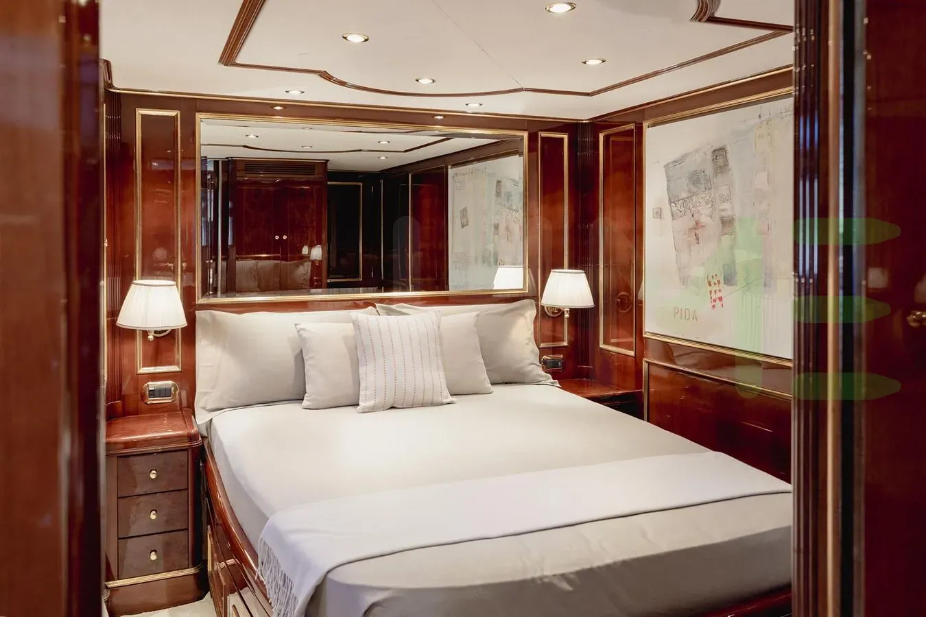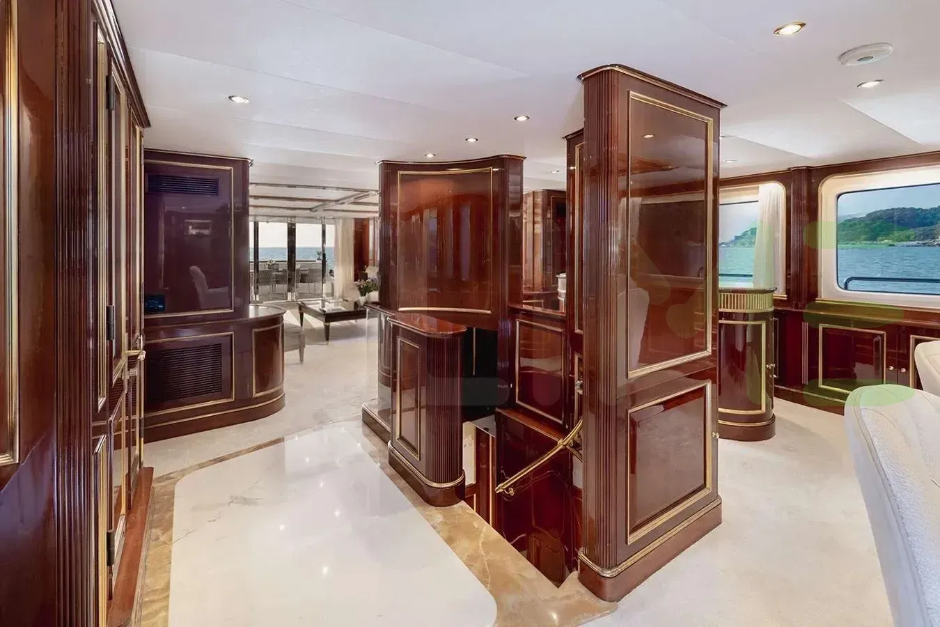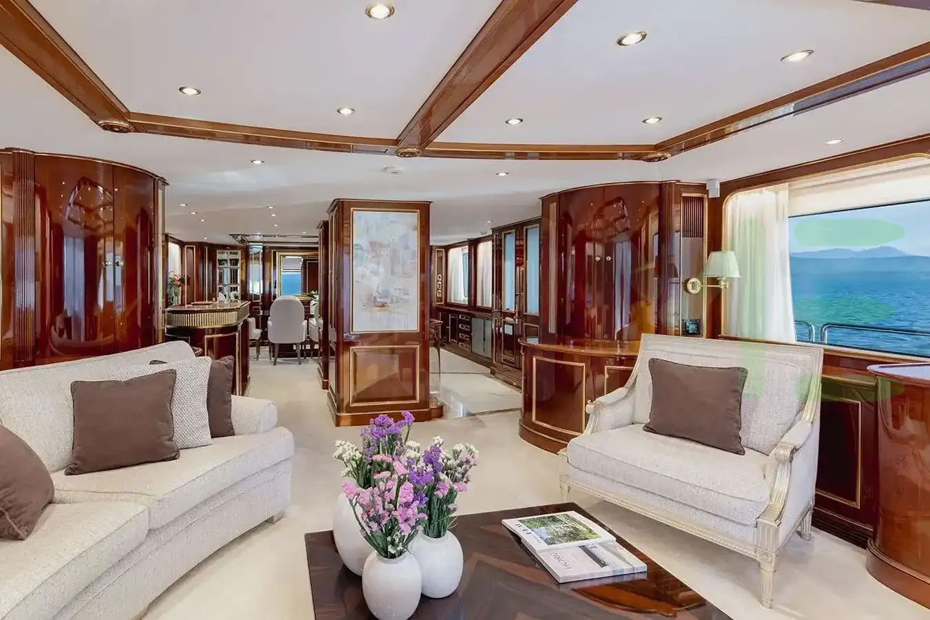 With a gross tonnage of 247, the HOSHI yacht for charter provides ample interior space for enjoyment. HOSHI offers accommodations for up to 10 guests in 5 lavishly appointed staterooms. She can also carry up to 6 crew onboard, including the Captain, to ensure a relaxed luxury yacht charter experience. The interior design by Zuretti Interior Design exudes a sense of luxury, seamlessly blending comfort with style.