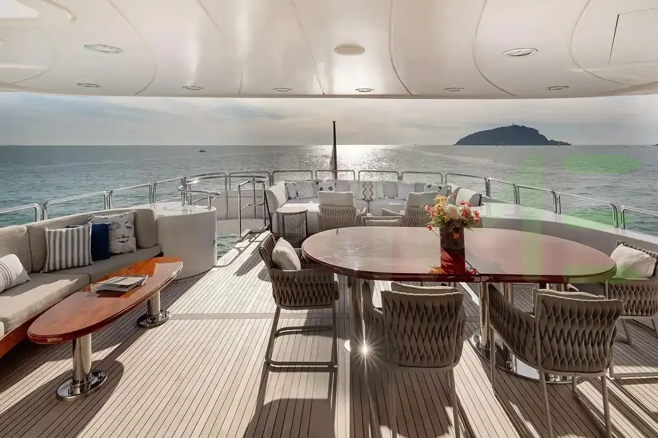 Built by Benetti in Italy, this stunning yacht boasts a length of 115' (35.05m), a beam of 25' (7.62m), and a draft of 6' 3" (1.9m).