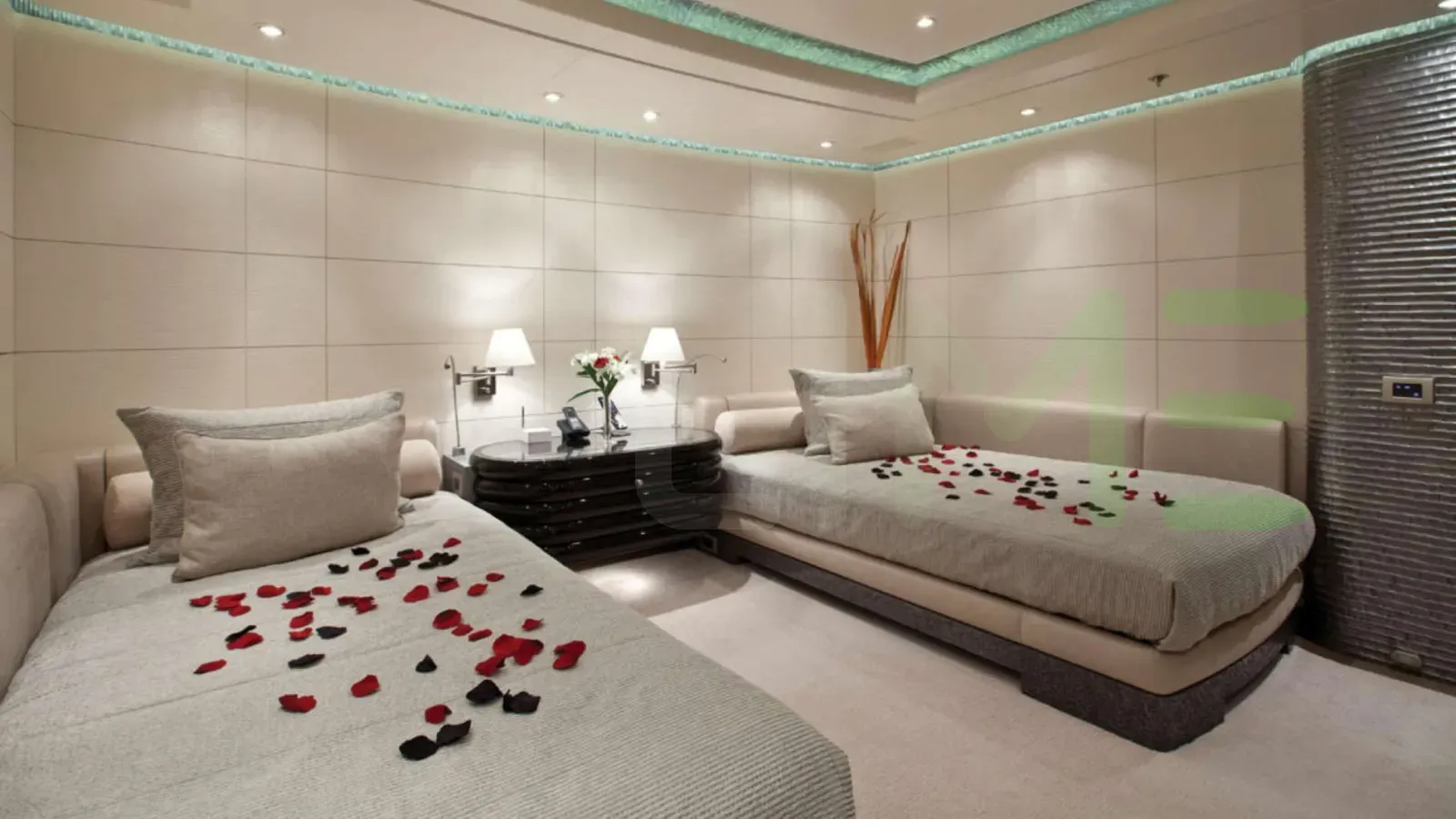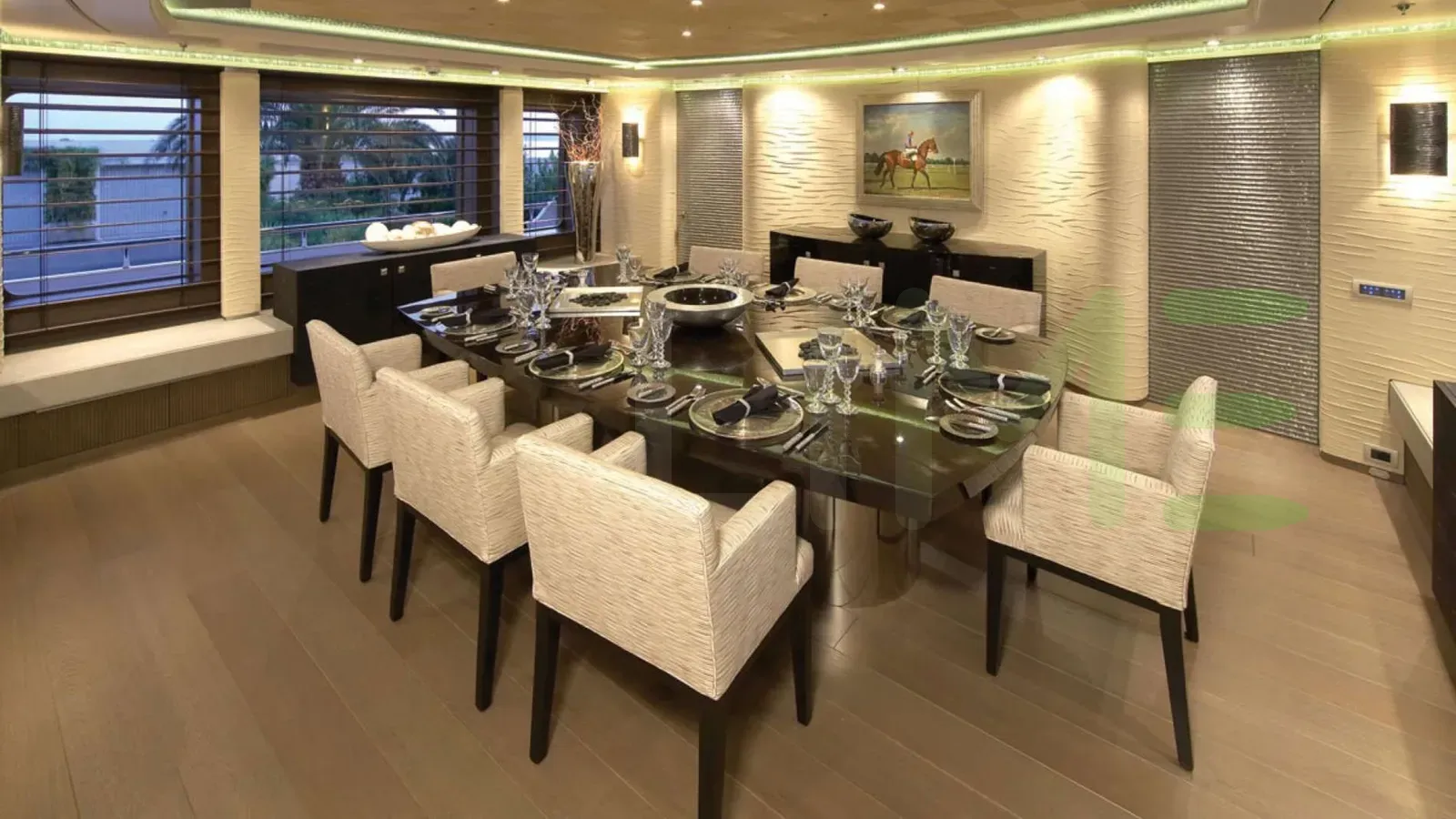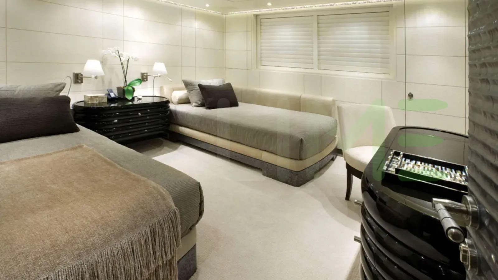 With a gross tonnage of 857, the HURRICANE RUN yacht for charter provides ample interior space for enjoyment. HURRICANE RUN offers accommodations for up to 12 guests in 6 lavishly appointed staterooms. She can also carry up to 12 crew onboard, including the Captain, to ensure a relaxed luxury yacht charter experience. The interior design by Terence Disdale Design exudes a sense of luxury, seamlessly blending comfort with style.