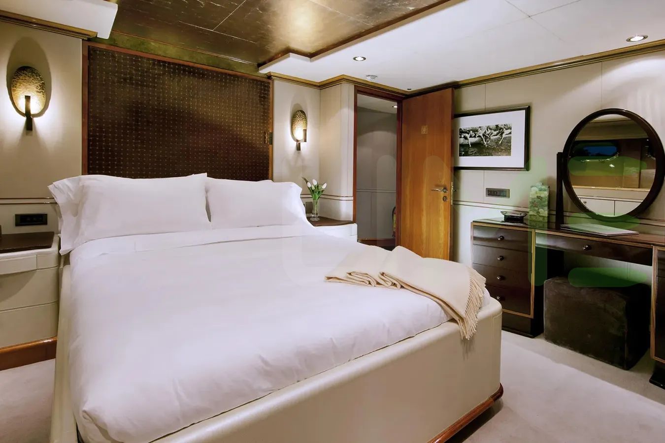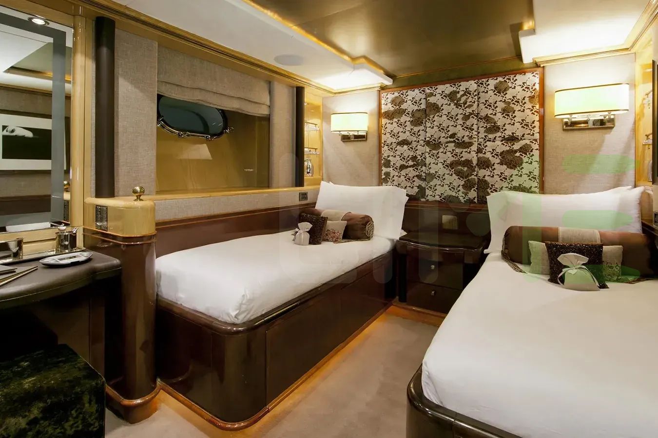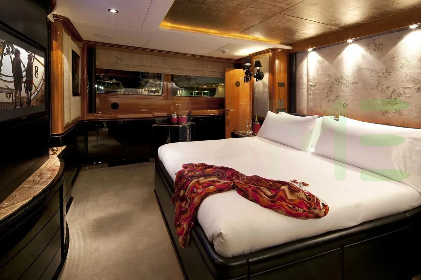 With a gross tonnage of 421, the IL SOLE yacht for charter provides ample interior space for enjoyment. IL SOLE offers accommodations for up to 12 guests in 6 lavishly appointed staterooms. She can also carry up to 9 crew onboard, including the Captain, to ensure a relaxed luxury yacht charter experience. The interior design by Zuretti Interior Design, Candy & Candy exudes a sense of luxury, seamlessly blending comfort with style.