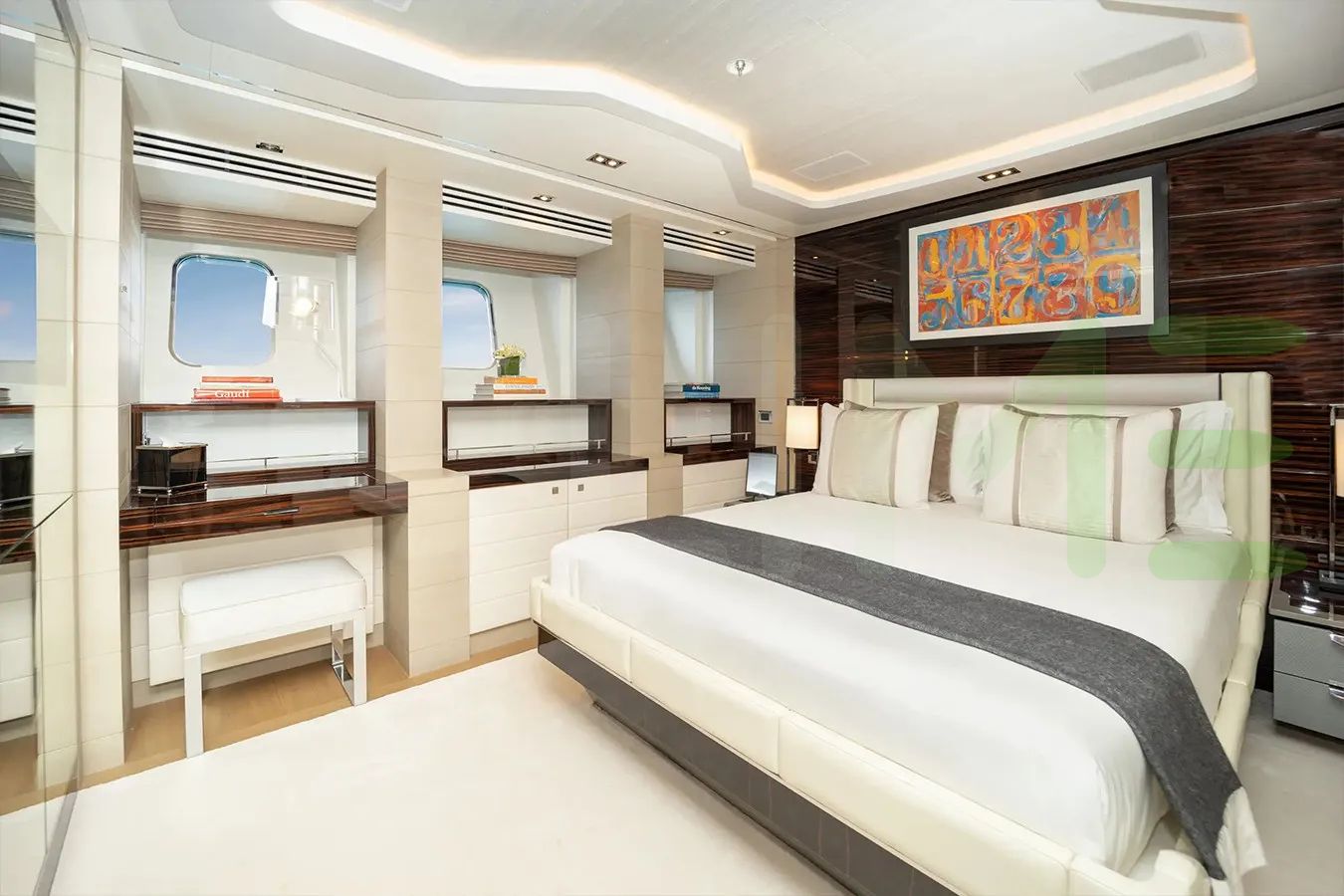 With a gross tonnage of 961, the ILLUSION yacht for charter provides ample interior space for enjoyment. ILLUSION offers accommodations for up to 12 guests in 6 lavishly appointed staterooms. She can also carry up to 15 crew onboard, including the Captain, to ensure a relaxed luxury yacht charter experience. The interior design by Bannenberg & Rowell Design exudes a sense of luxury, seamlessly blending comfort with style.