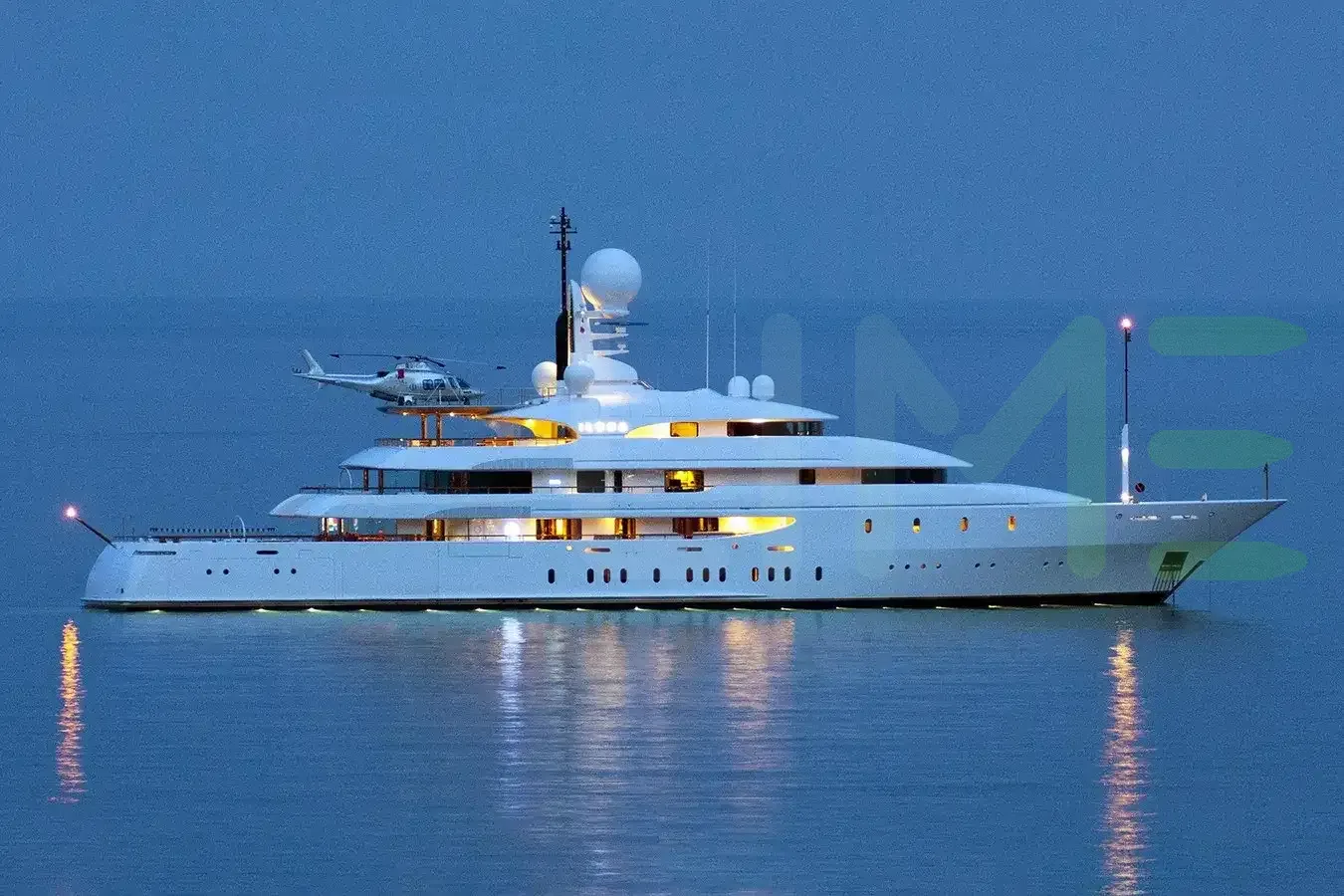 Her features include a movie theatre, beauty salon, elevator, underwater lights and air conditioning.