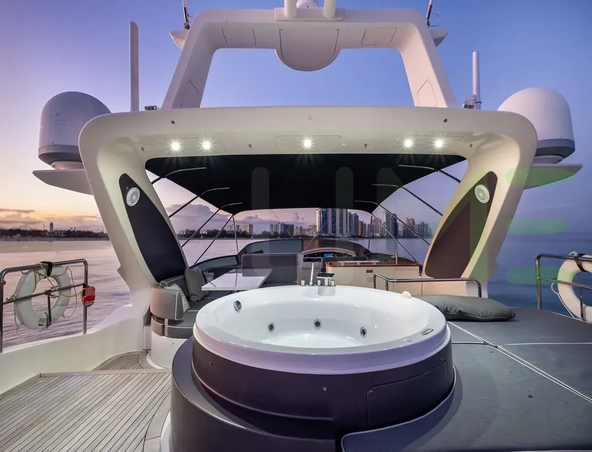Built by Azimut in Italy, this stunning yacht boasts a length of 101' (30.78m), a beam of 22' 4" (6.81m), and a draft of 6' 4" (1.93m).