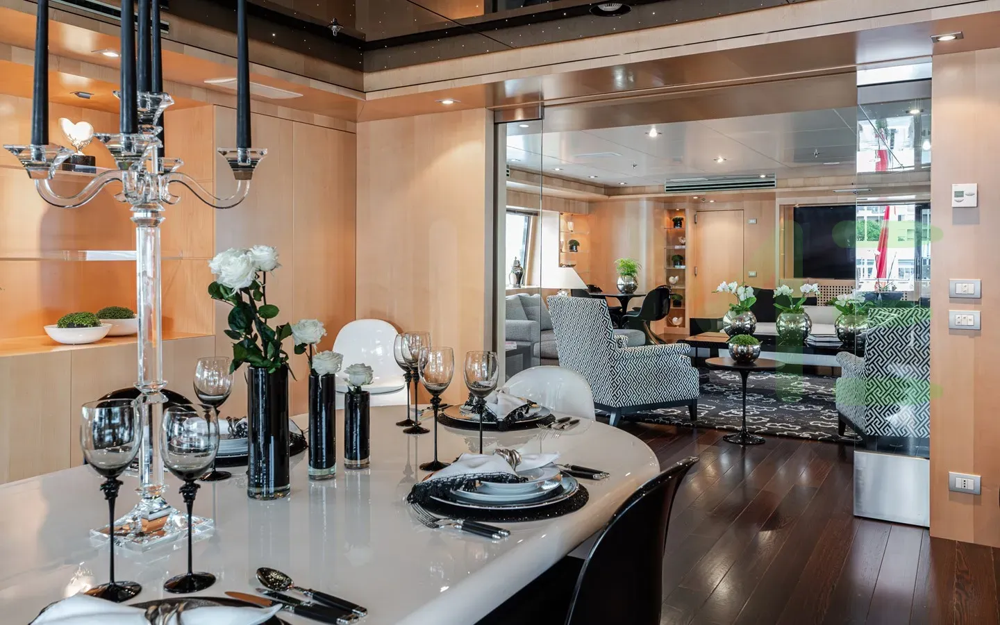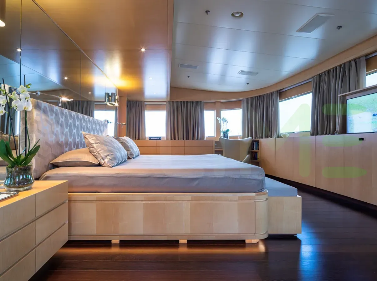 With a gross tonnage of 1,192, the IPANEMAS T yacht for charter provides ample interior space for enjoyment. IPANEMAS T offers accommodations for up to 16 guests in 8 lavishly appointed staterooms. She can also carry up to 16 crew onboard, including the Captain, to ensure a relaxed luxury yacht charter experience. The interior design by Della Role Design, Studio Dedalo exudes a sense of luxury, seamlessly blending comfort with style.