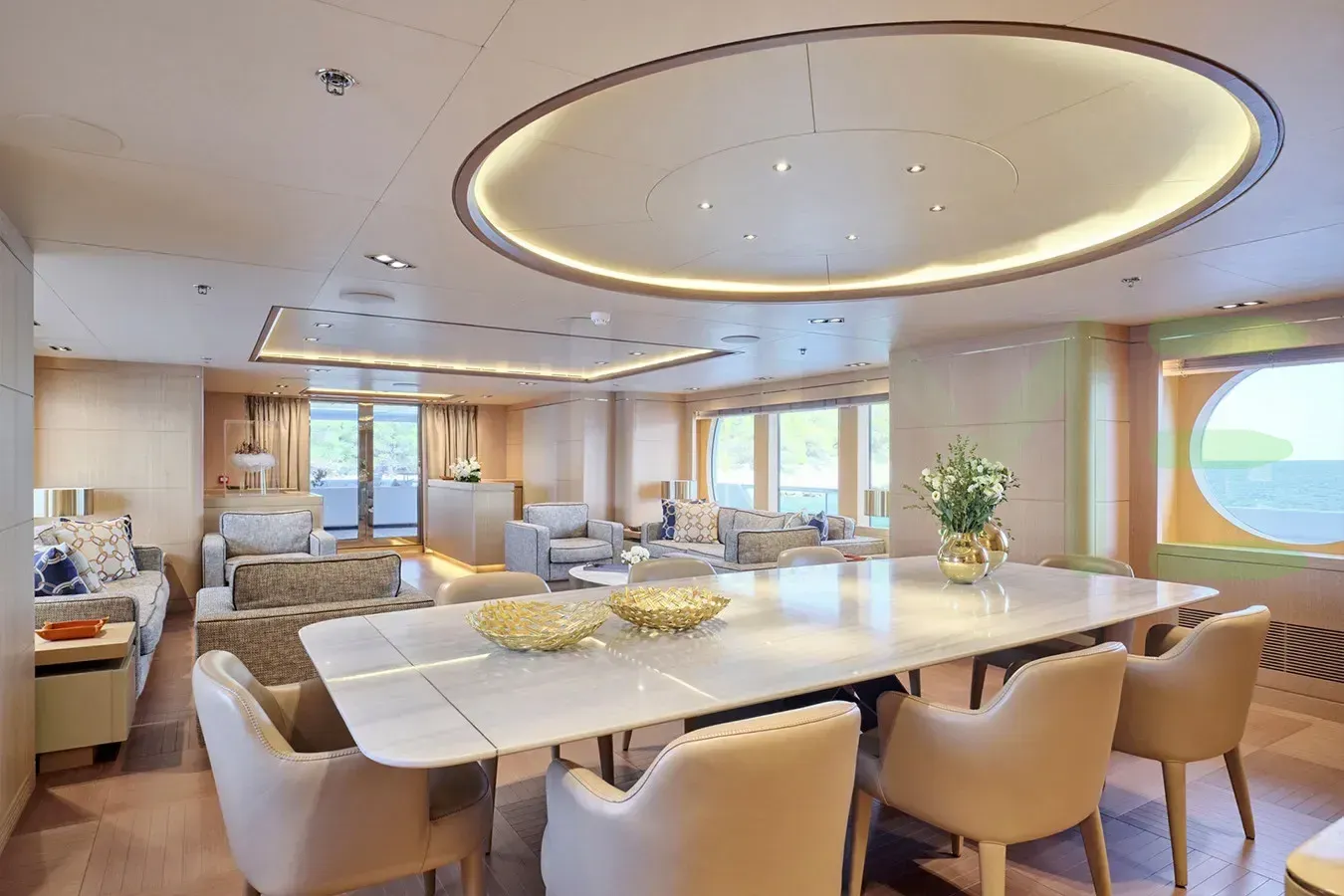 With a gross tonnage of 603, the JAZ yacht for charter provides ample interior space for enjoyment. JAZ offers accommodations for up to 12 guests in 6 lavishly appointed staterooms. She can also carry up to 11 crew onboard, including the Captain, to ensure a relaxed luxury yacht charter experience. The interior design by Terence Disdale Design, Studio Vafiadis exudes a sense of luxury, seamlessly blending comfort with style.