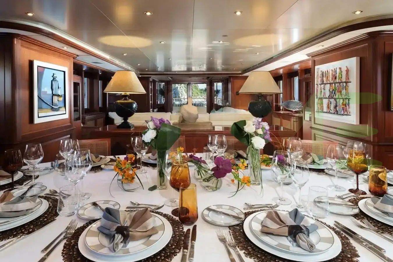 With a gross tonnage of 496, the JO I yacht for charter provides ample interior space for enjoyment. JO I offers accommodations for up to 14 guests in 6 lavishly appointed staterooms. She can also carry up to 11 crew onboard, including the Captain, to ensure a relaxed luxury yacht charter experience. The interior design by Zuretti Interior Design exudes a sense of luxury, seamlessly blending comfort with style.