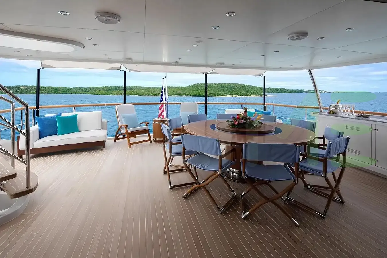 With a gross tonnage of 456, the JODI ANN yacht for charter provides ample interior space for enjoyment. JODI ANN offers accommodations for up to 12 guests in 5 lavishly appointed staterooms. She can also carry up to 9 crew onboard, including the Captain, to ensure a relaxed luxury yacht charter experience. The interior design by Benetti SpA exudes a sense of luxury, seamlessly blending comfort with style.