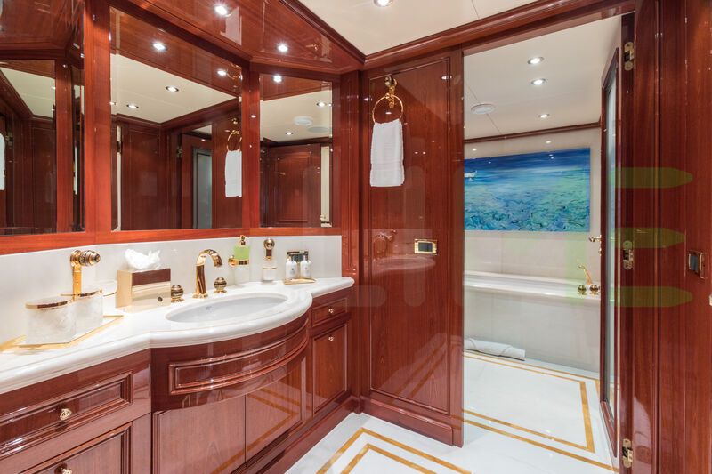 The exterior, designed by Codecasa S.p.A., Evan K Marshall, captures your attention with beautiful lines and impeccable craftsmanship. Whether you're lounging on the spacious decks or enjoying water sports in a secluded anchorage, the JOIA THE CROWN JEWEL yacht for charter, built of Steel and Aluminium, offers a wealth of opportunities for relaxation and adventure.