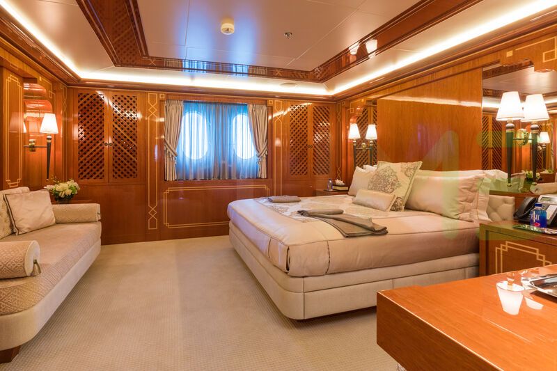 With a gross tonnage of 1,278, the JOIA THE CROWN JEWEL yacht for charter provides ample interior space for enjoyment. JOIA THE CROWN JEWEL offers accommodations for up to 14 guests in 9 lavishly appointed staterooms. She can also carry up to 19 crew onboard, including the Captain, to ensure a relaxed luxury yacht charter experience. The interior design by Della Role Design exudes a sense of luxury, seamlessly blending comfort with style.