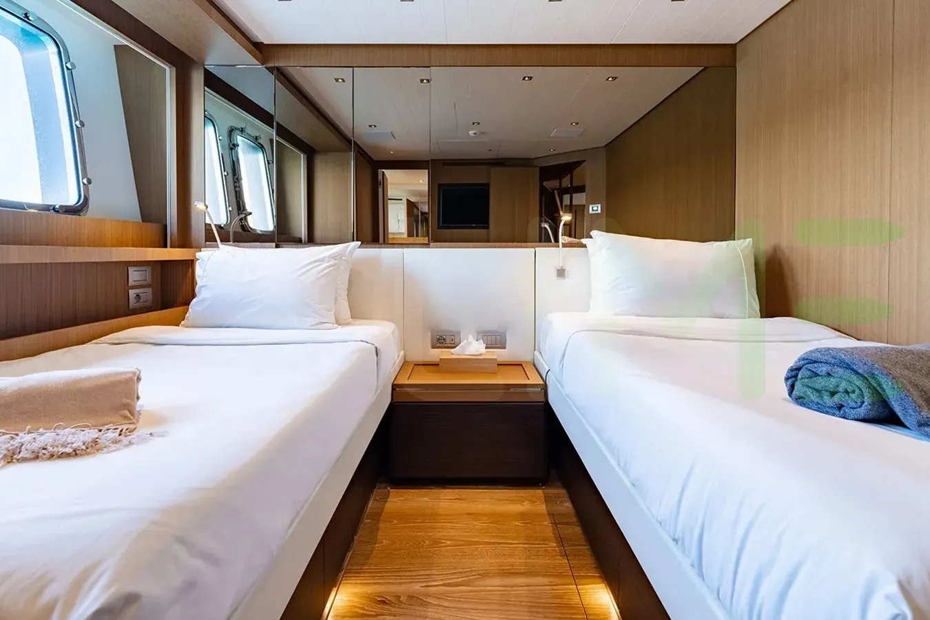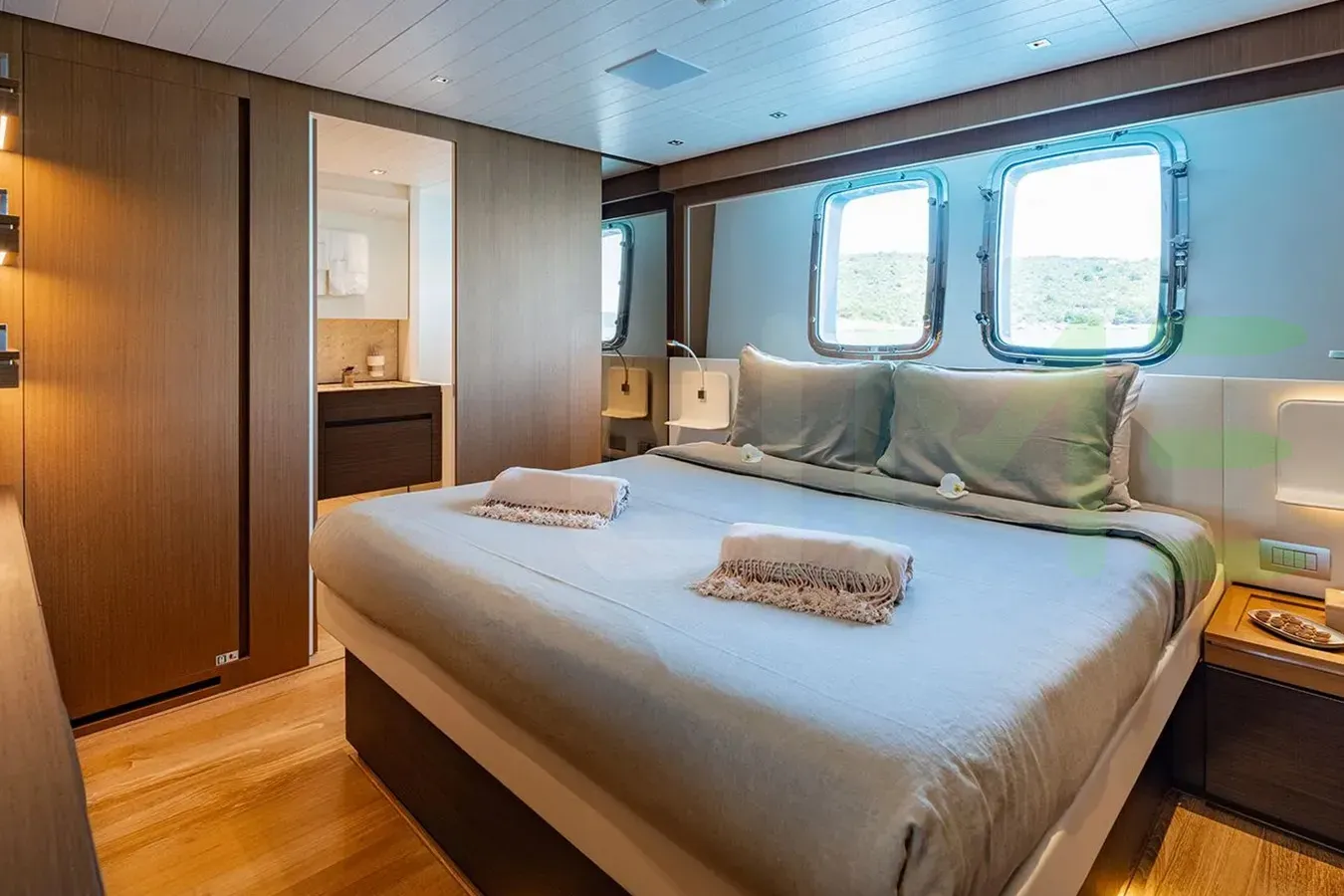 Whatever your activities on your charter, you'll find some impressive features are seamlessly integrated to help you, notably Wi-Fi connectivity, allowing you to stay connected at all times, should you wish. You can stay comfortable on board whatever the weather, with air conditioning during your charter.