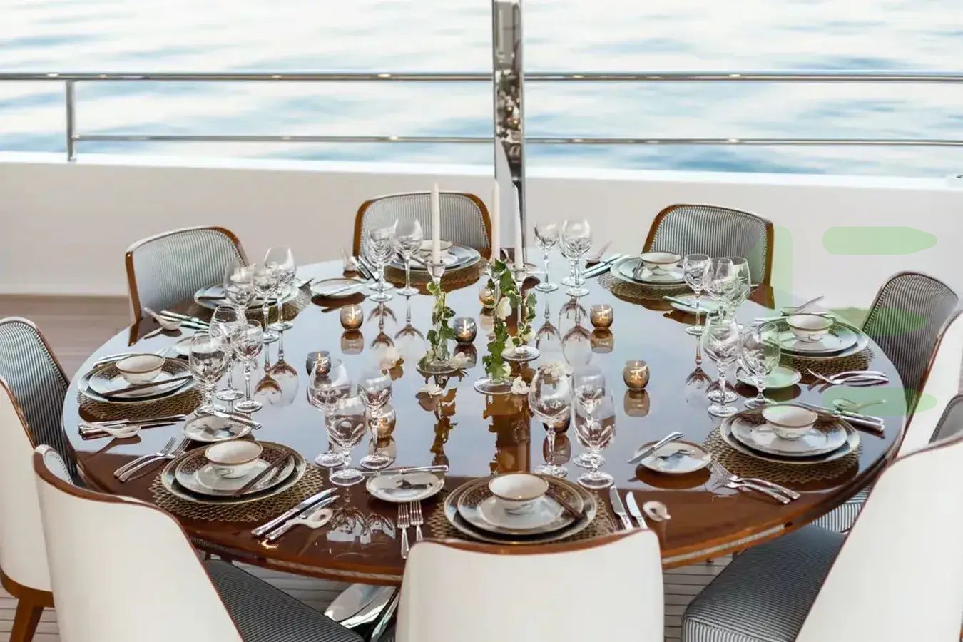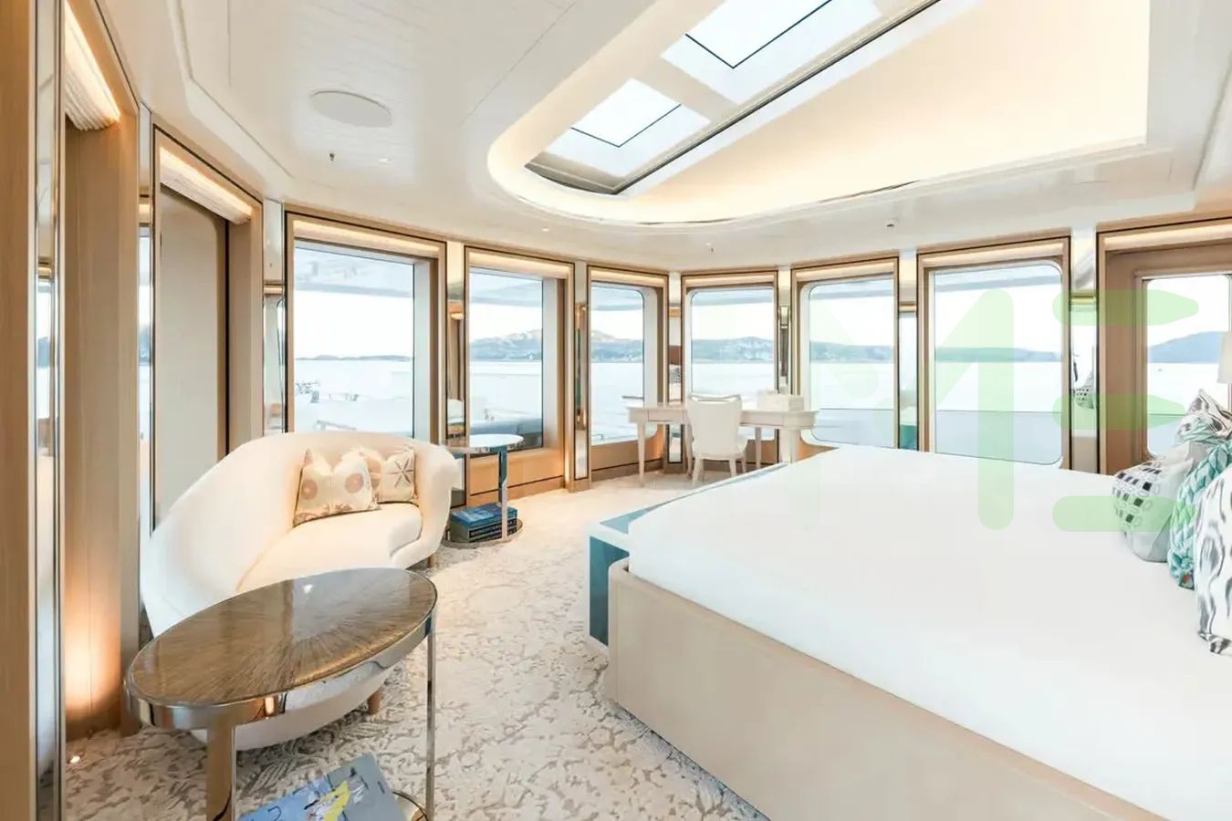 With a gross tonnage of 1,095, the JOY yacht for charter provides ample interior space for enjoyment. JOY offers accommodations for up to 12 guests in 7 lavishly appointed staterooms. She can also carry up to 19 crew onboard, including the Captain, to ensure a relaxed luxury yacht charter experience. The interior design by Studio Indigo exudes a sense of luxury, seamlessly blending comfort with style.
