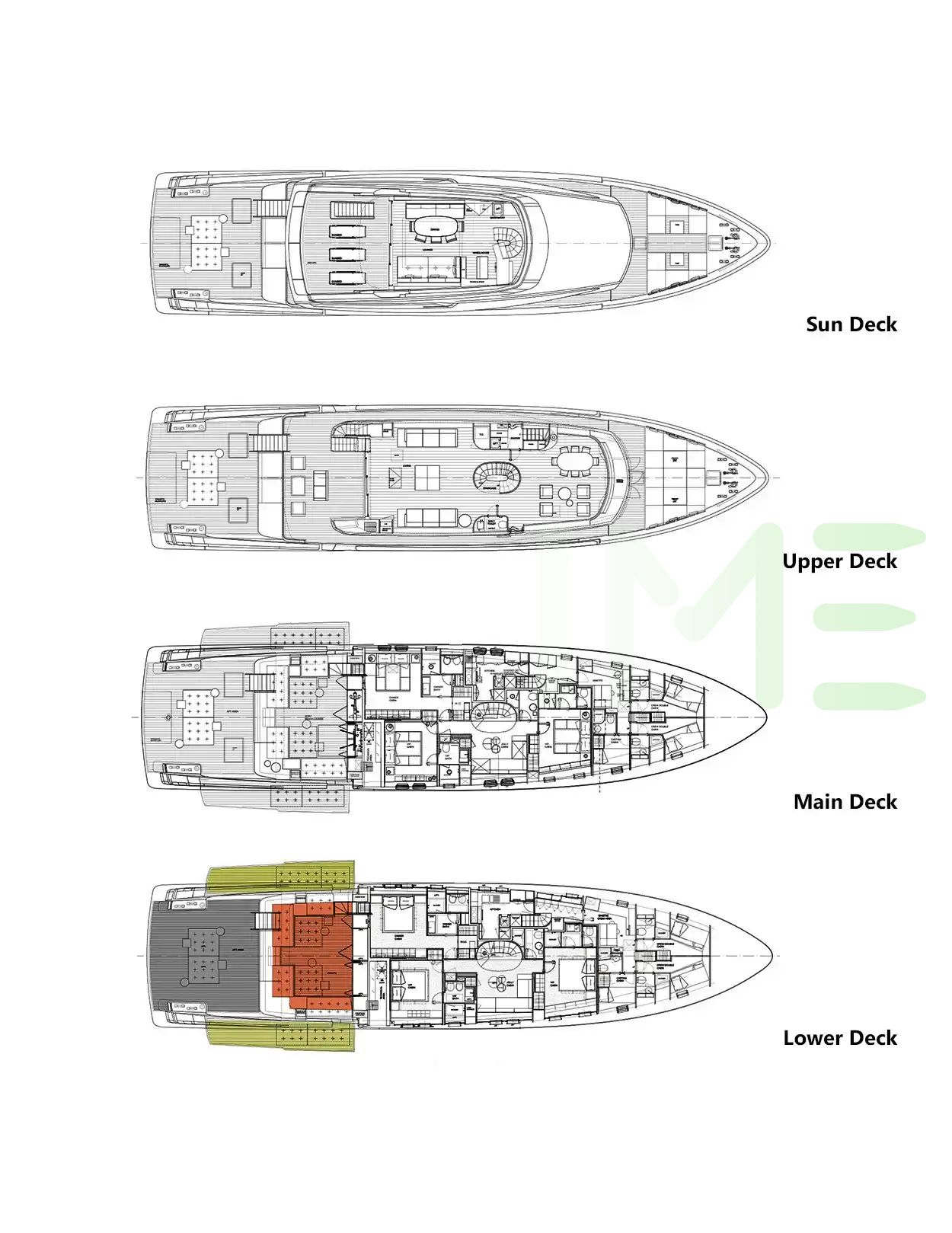 Request plans that include the layout of staterooms, guest areas, and outdoor spaces, as well as crew quarters and work areas.