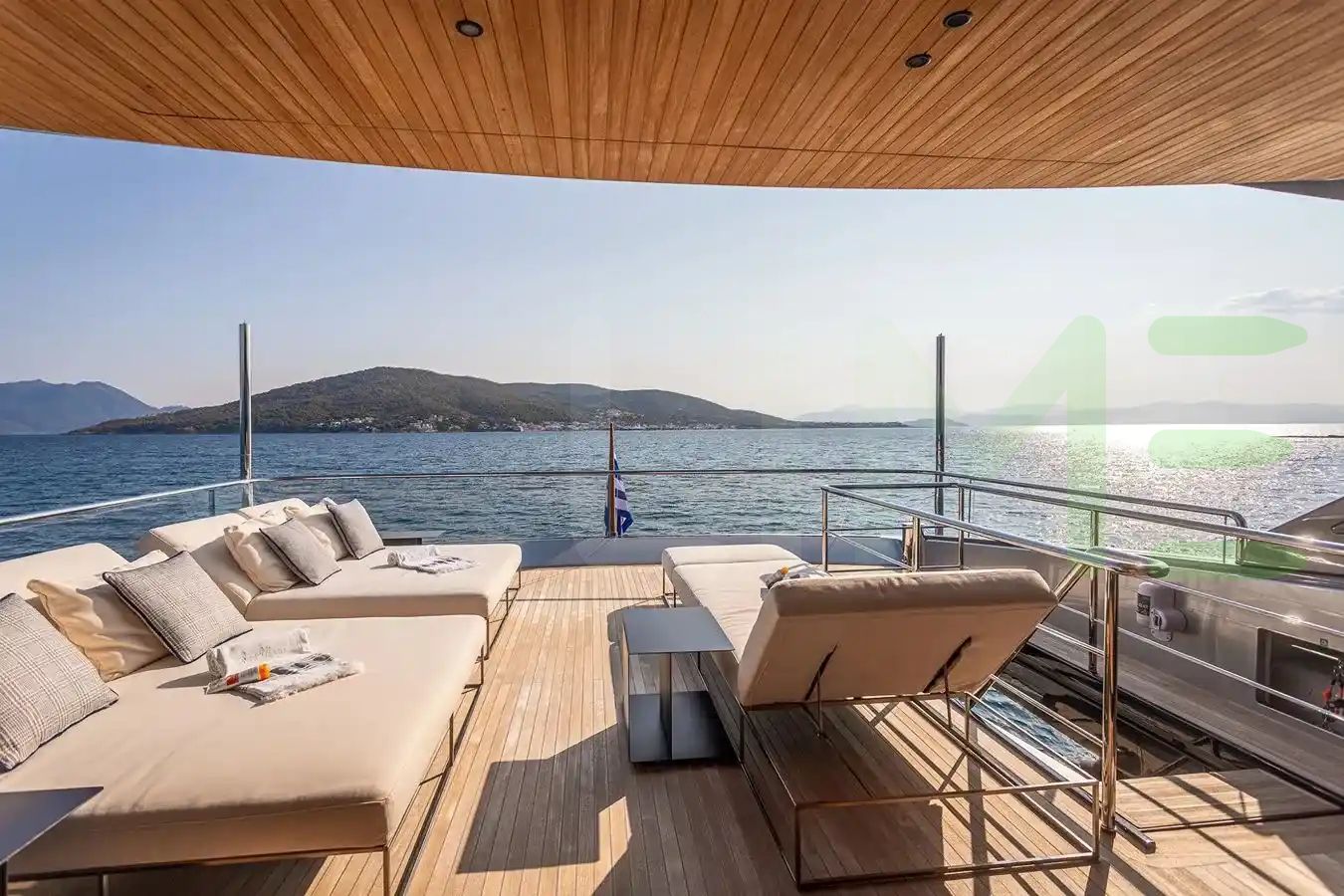 The exterior, designed by Zuccon International Project, captures your attention with beautiful lines and impeccable craftsmanship. Whether you're lounging on the spacious decks or enjoying water sports in a secluded anchorage, the JUST MARIE III yacht for charter, built of GRP, offers a wealth of opportunities for relaxation and adventure.