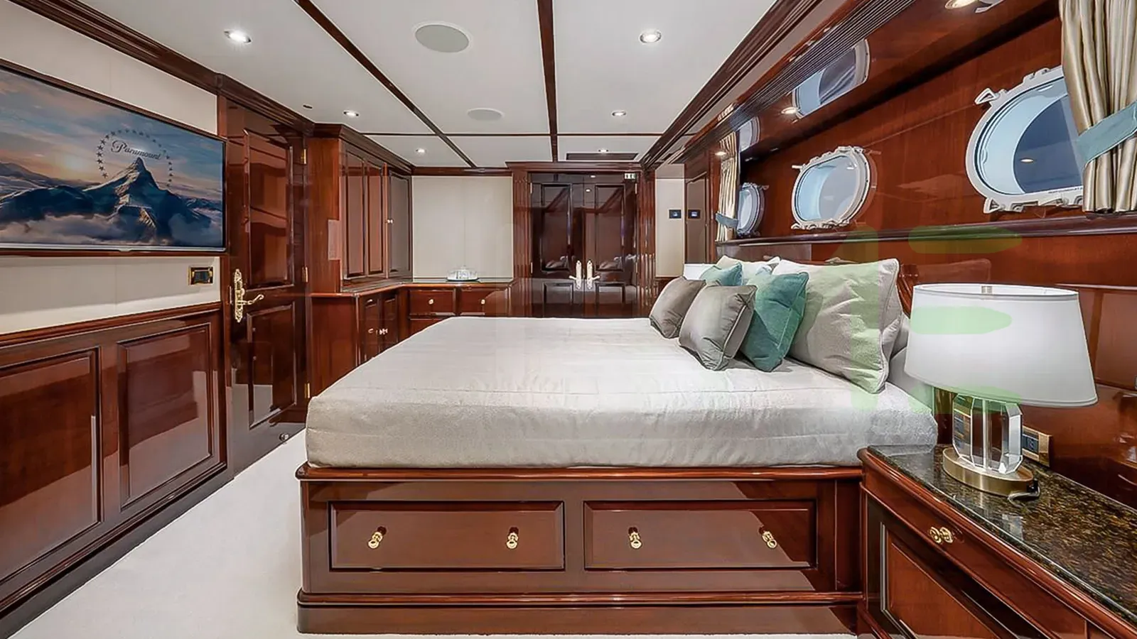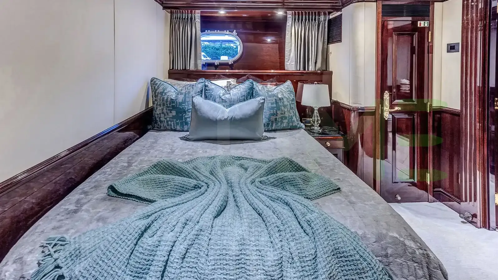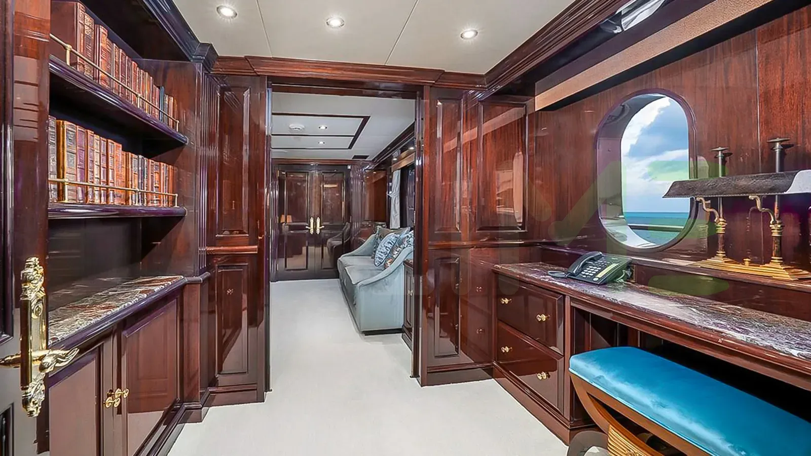 With a gross tonnage of 460, the KEFI yacht for charter provides ample interior space for enjoyment. KEFI offers accommodations for up to 12 guests in 6 lavishly appointed staterooms. She can also carry up to 9 crew onboard, including the Captain, to ensure a relaxed luxury yacht charter experience. The interior design by Donald Starkey Designs exudes a sense of luxury, seamlessly blending comfort with style.