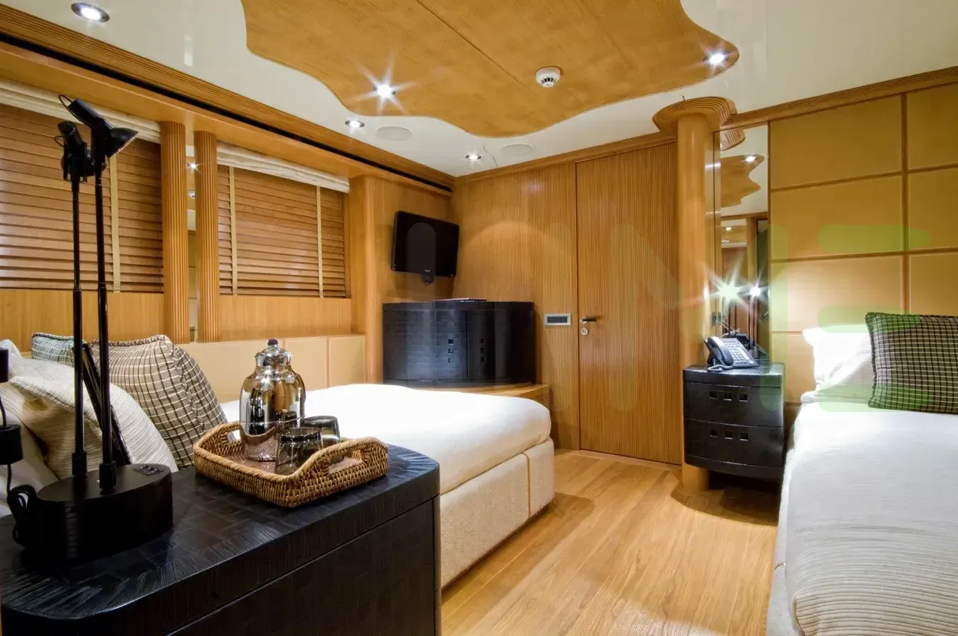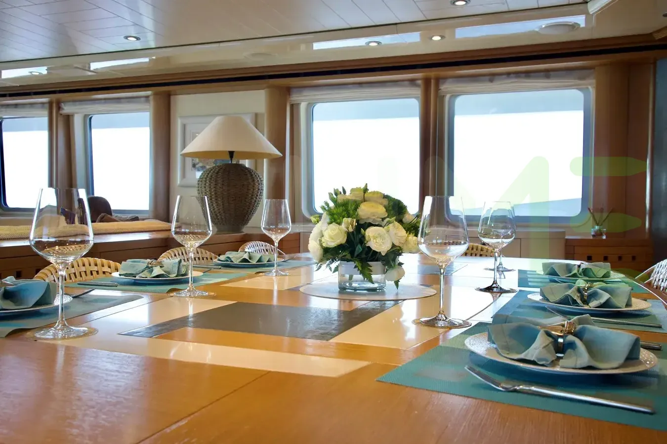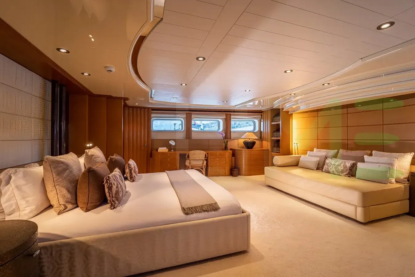 With a gross tonnage of 417, the KIJO yacht for charter provides ample interior space for enjoyment. KIJO offers accommodations for up to 12 guests in 5 lavishly appointed staterooms. She can also carry up to 8 crew onboard, including the Captain, to ensure a relaxed luxury yacht charter experience. The interior design by Terence Disdale Design exudes a sense of luxury, seamlessly blending comfort with style.