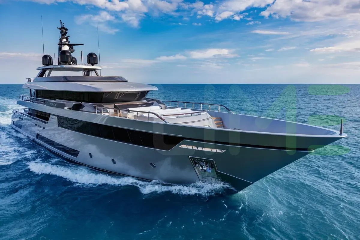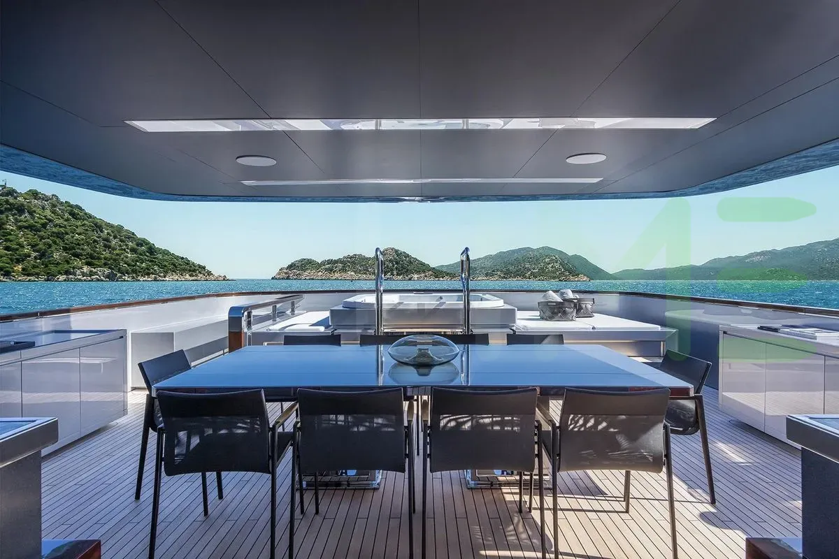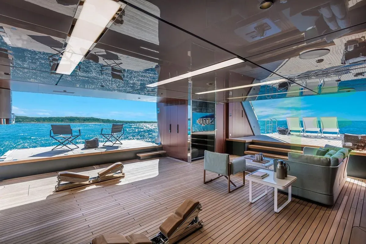 The exterior, designed by Officina Italiana Design (Mauro Micheli), captures your attention with beautiful lines and impeccable craftsmanship. Whether you're lounging on the spacious decks or enjoying water sports in a secluded anchorage, the KINSHIP yacht for charter, built of Steel and Aluminium, offers a wealth of opportunities for relaxation and adventure.