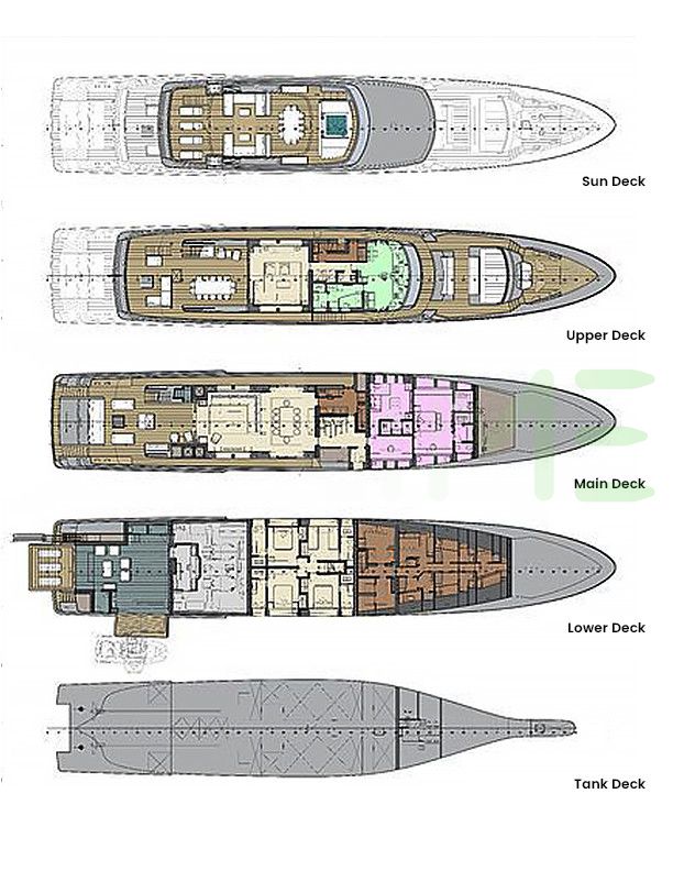 Request plans that include the layout of staterooms, guest areas, and outdoor spaces, as well as crew quarters and work areas.