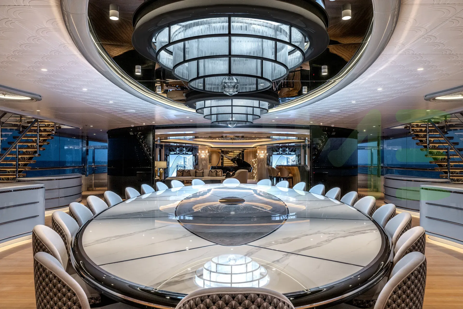 With a gross tonnage of 4,918, the KISMET yacht for charter provides ample interior space for enjoyment. KISMET offers accommodations for up to 20 guests in 8 lavishly appointed staterooms. She can also carry up to 36 crew onboard, including the Captain, to ensure a relaxed luxury yacht charter experience. The interior design by Reymond Langton Design Ltd. exudes a sense of luxury, seamlessly blending comfort with style.