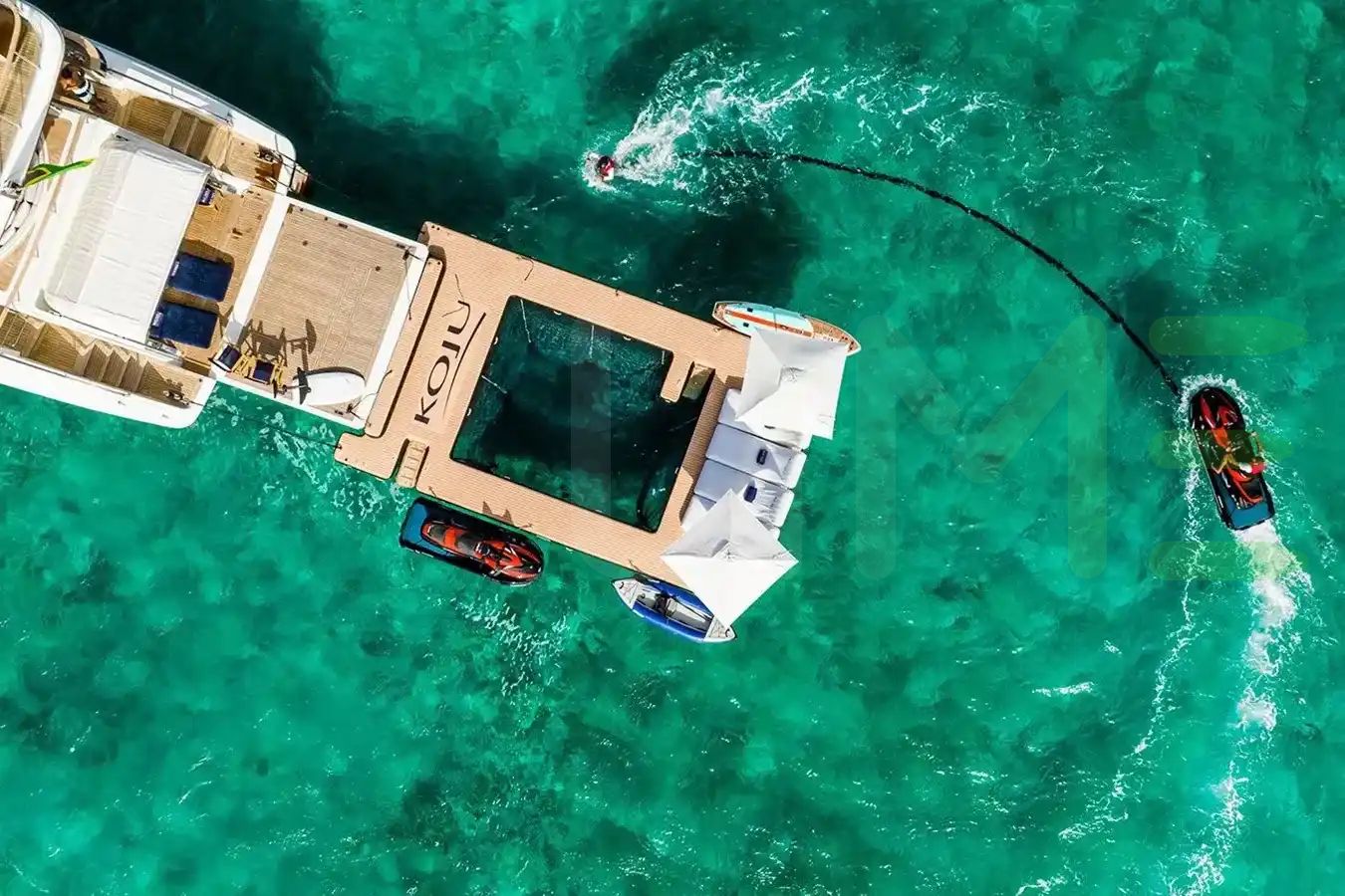 Indulge in the opulent comforts of spacious lounges, gourmet dining areas, and elegantly appointed staterooms. Savor the breathtaking views from the open decks, unwind on a sun lounge, or stay active in the water. For adventure enthusiasts, the KOJU motoryacht is equipped with an array of water toys. Dive into the crystal-clear waters for a refreshing swim, explore hidden coves, or experience the thrill of wakeboarding. With attentive crew members catering to your every need, a yacht charter promises an unforgettable blend of relaxation, luxury, and adventure.