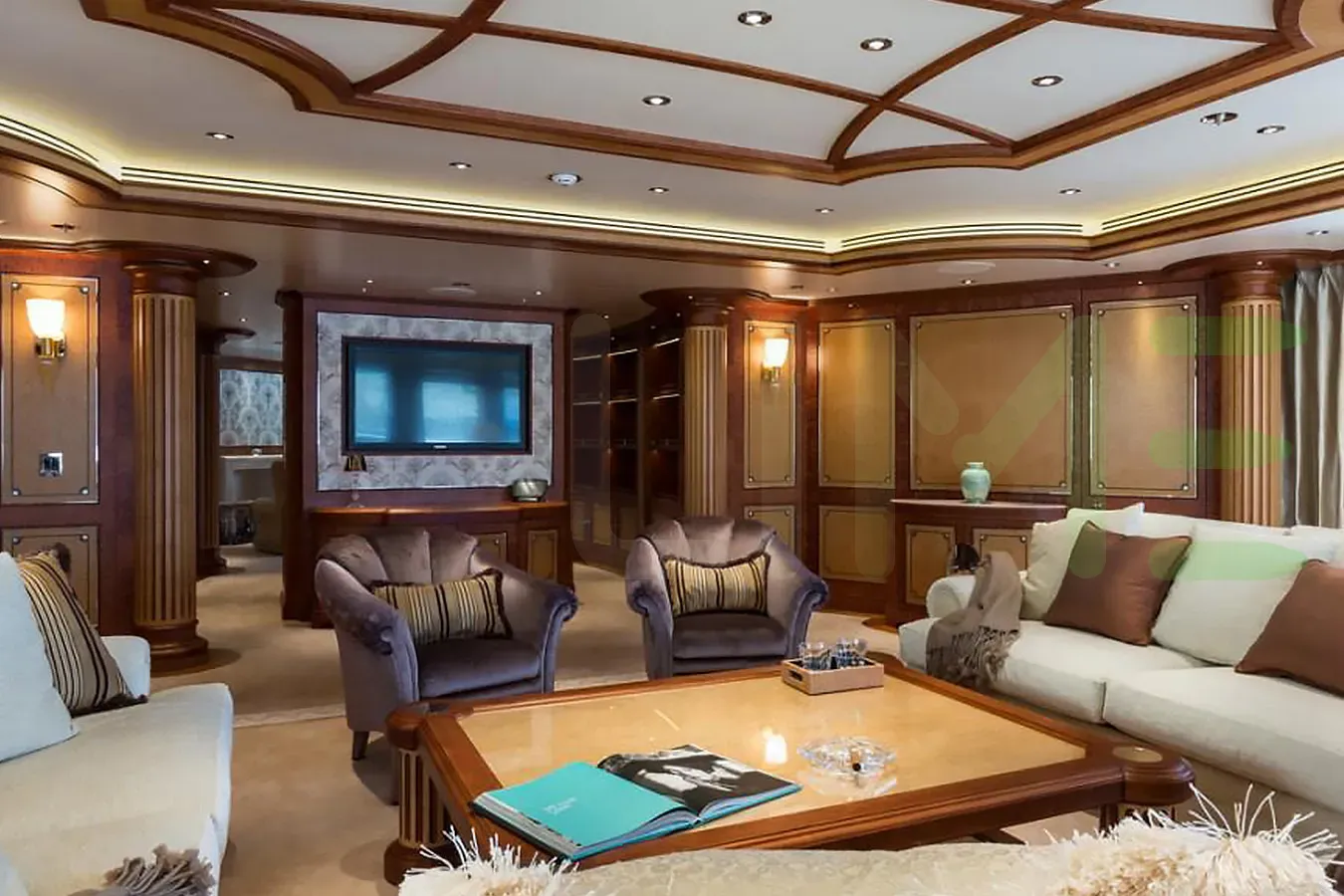 With a gross tonnage of 2,685, the KOSATKA yacht for charter provides ample interior space for enjoyment. KOSATKA offers accommodations for up to 12 guests in 6 lavishly appointed staterooms. She can also carry up to 25 crew onboard, including the Captain, to ensure a relaxed luxury yacht charter experience. The interior design by H2 Yacht Design exudes a sense of luxury, seamlessly blending comfort with style.