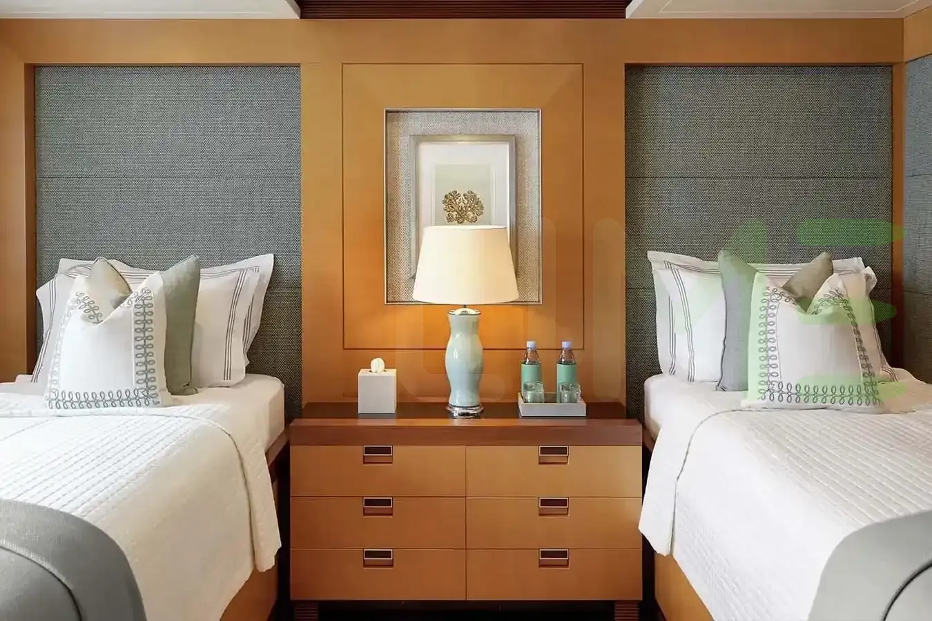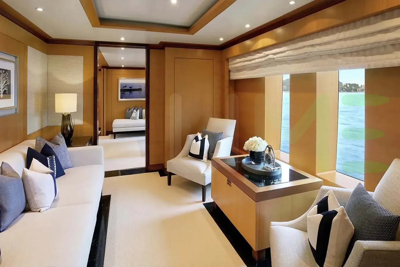 With a gross tonnage of 971, the LA BLANCA yacht for charter provides ample interior space for enjoyment. LA BLANCA offers accommodations for up to 12 guests in 6 lavishly appointed staterooms. She can also carry up to 16 crew onboard, including the Captain, to ensure a relaxed luxury yacht charter experience. The interior design by RWD exudes a sense of luxury, seamlessly blending comfort with style.