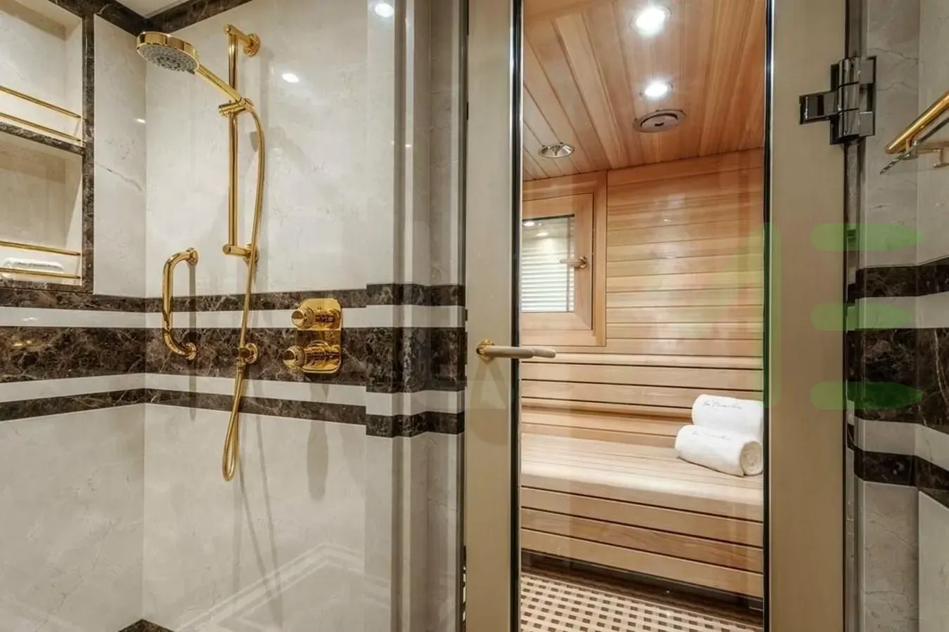 Her features include steam room and beach club.