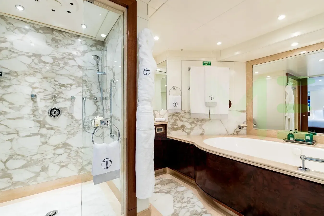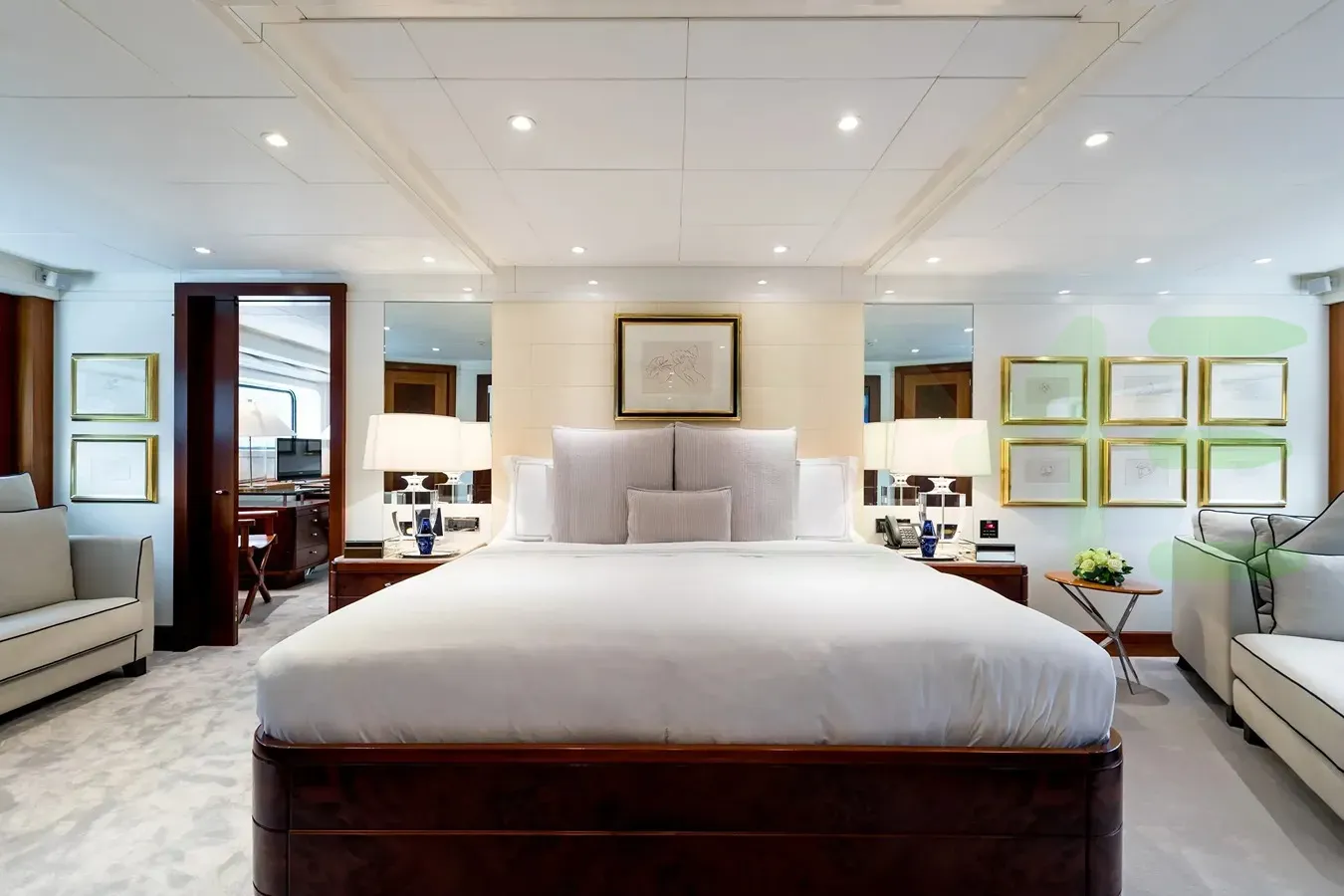With a gross tonnage of 640, the LA TANIA yacht for charter provides ample interior space for enjoyment. LA TANIA offers accommodations for up to 12 guests in 5 lavishly appointed staterooms. She can also carry up to 12 crew onboard, including the Captain, to ensure a relaxed luxury yacht charter experience. The interior design by Winch Design exudes a sense of luxury, seamlessly blending comfort with style.