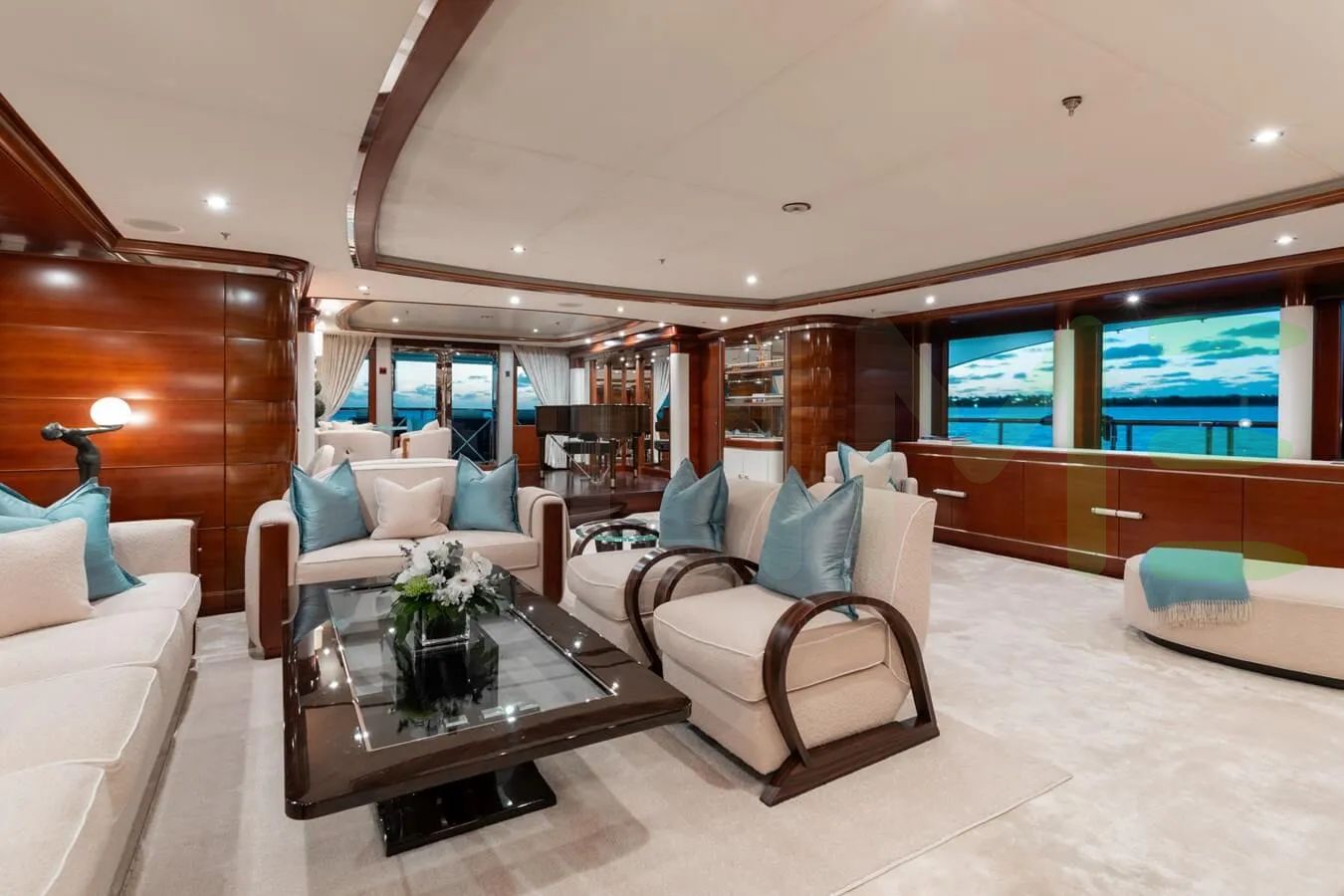 With a gross tonnage of 812, the LADY B yacht for charter provides ample interior space for enjoyment. LADY B offers accommodations for up to 11 guests in 6 lavishly appointed staterooms. She can also carry up to 13 crew onboard, including the Captain, to ensure a relaxed luxury yacht charter experience. The interior design by Mauro Izzo, Destry Darr Designs exudes a sense of luxury, seamlessly blending comfort with style.