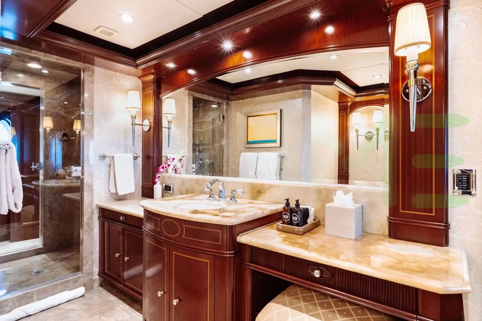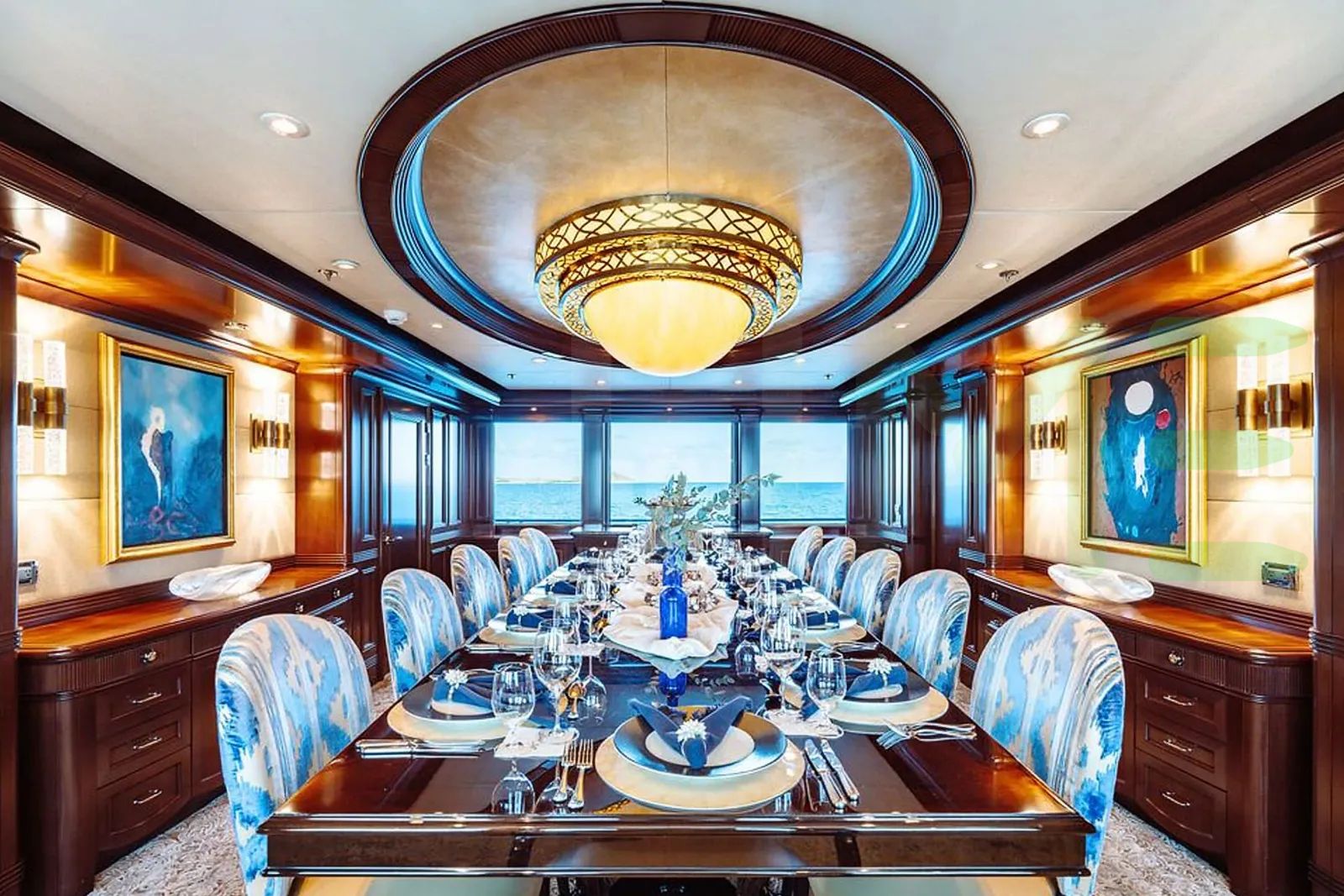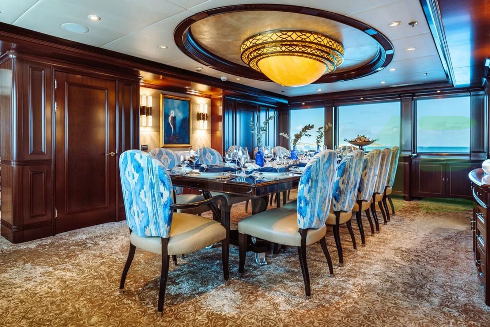 With a gross tonnage of 1,100, the LADY BETH yacht for charter provides ample interior space for enjoyment. LADY BETH offers accommodations for up to 14 guests in 6 lavishly appointed staterooms. She can also carry up to 13 crew onboard, including the Captain, to ensure a relaxed luxury yacht charter experience. The interior design by Bonville Associates exudes a sense of luxury, seamlessly blending comfort with style.