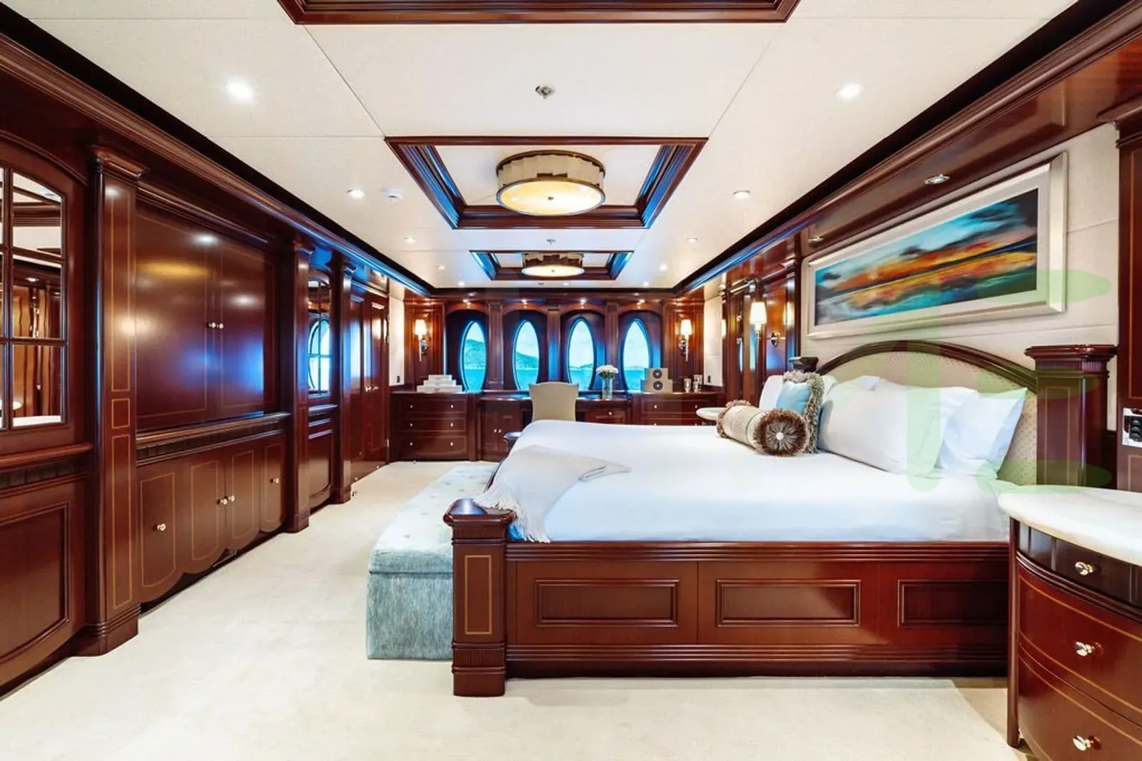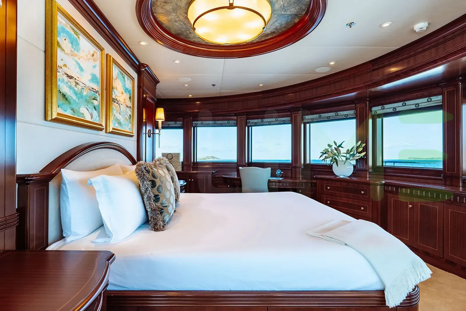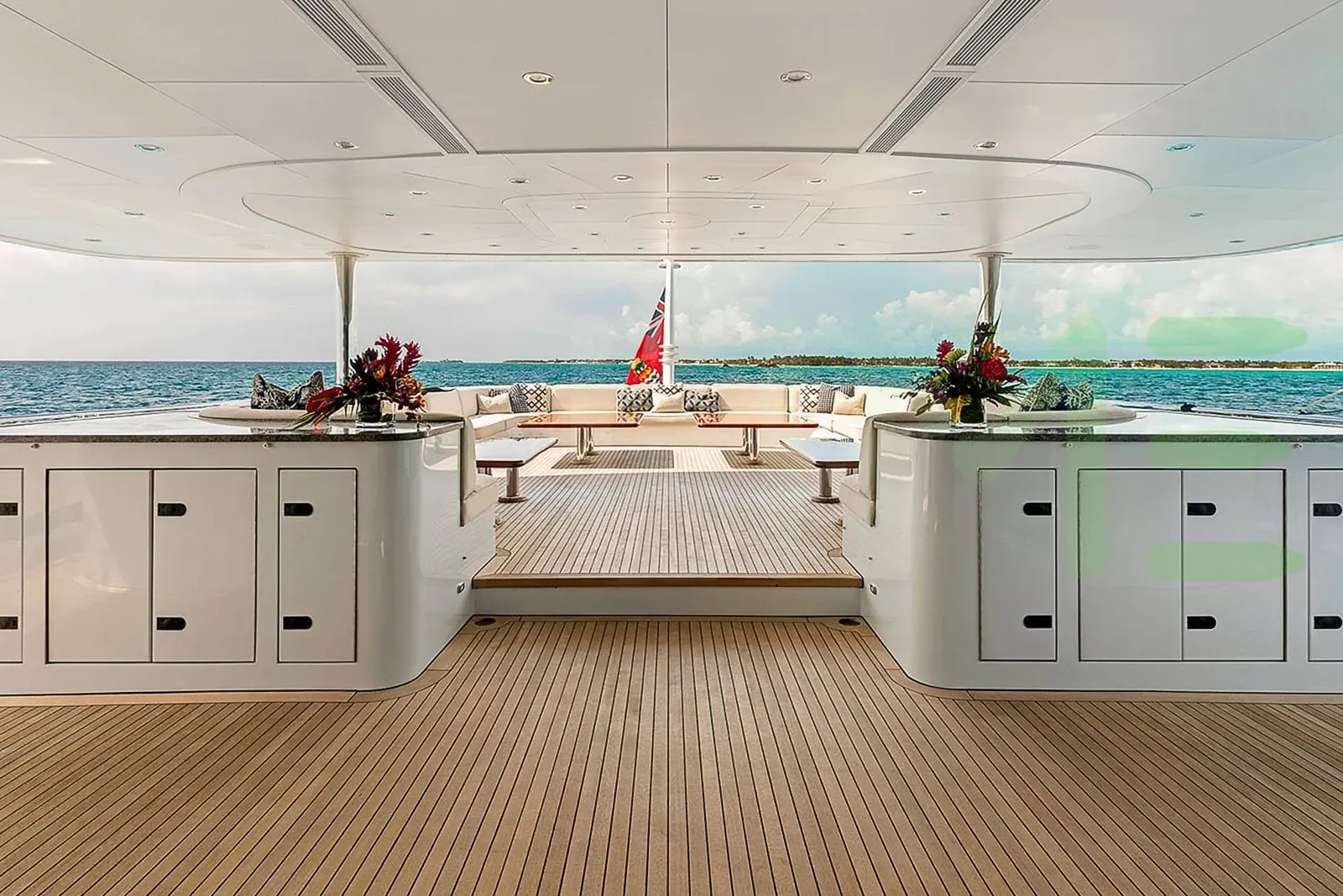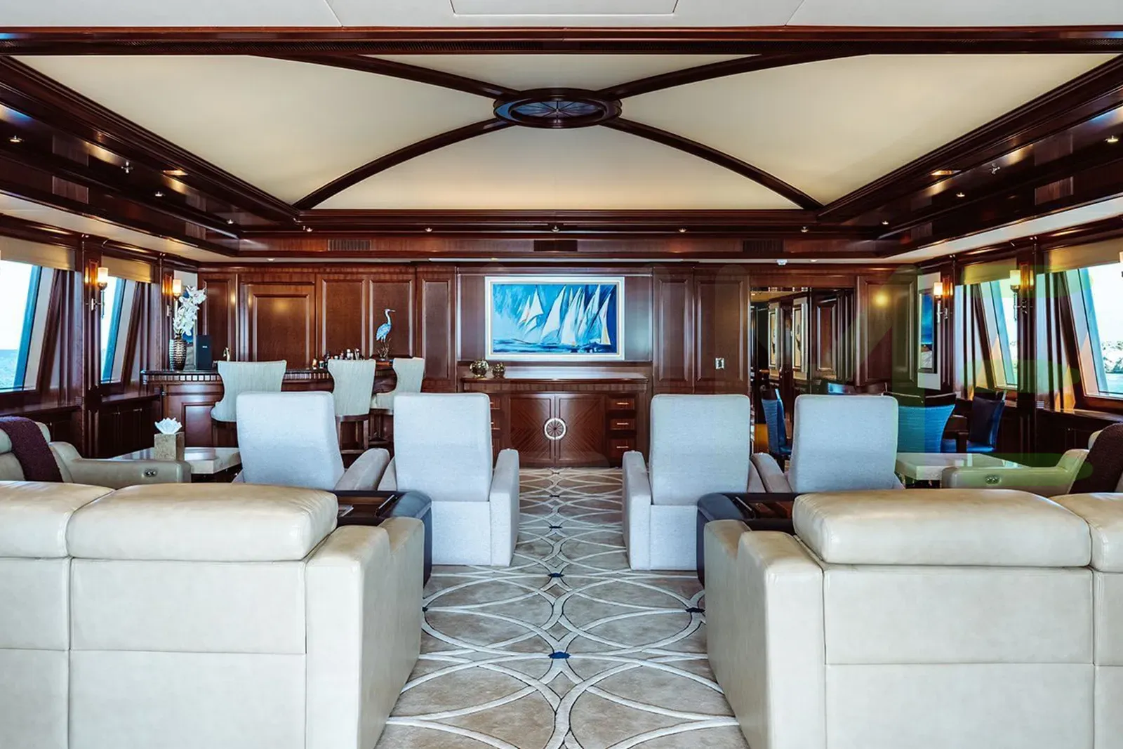With a gross tonnage of 1,100, the LADY BETH yacht for charter provides ample interior space for enjoyment. LADY BETH offers accommodations for up to 14 guests in 6 lavishly appointed staterooms. She can also carry up to 13 crew onboard, including the Captain, to ensure a relaxed luxury yacht charter experience. The interior design by Bonville Associates exudes a sense of luxury, seamlessly blending comfort with style.