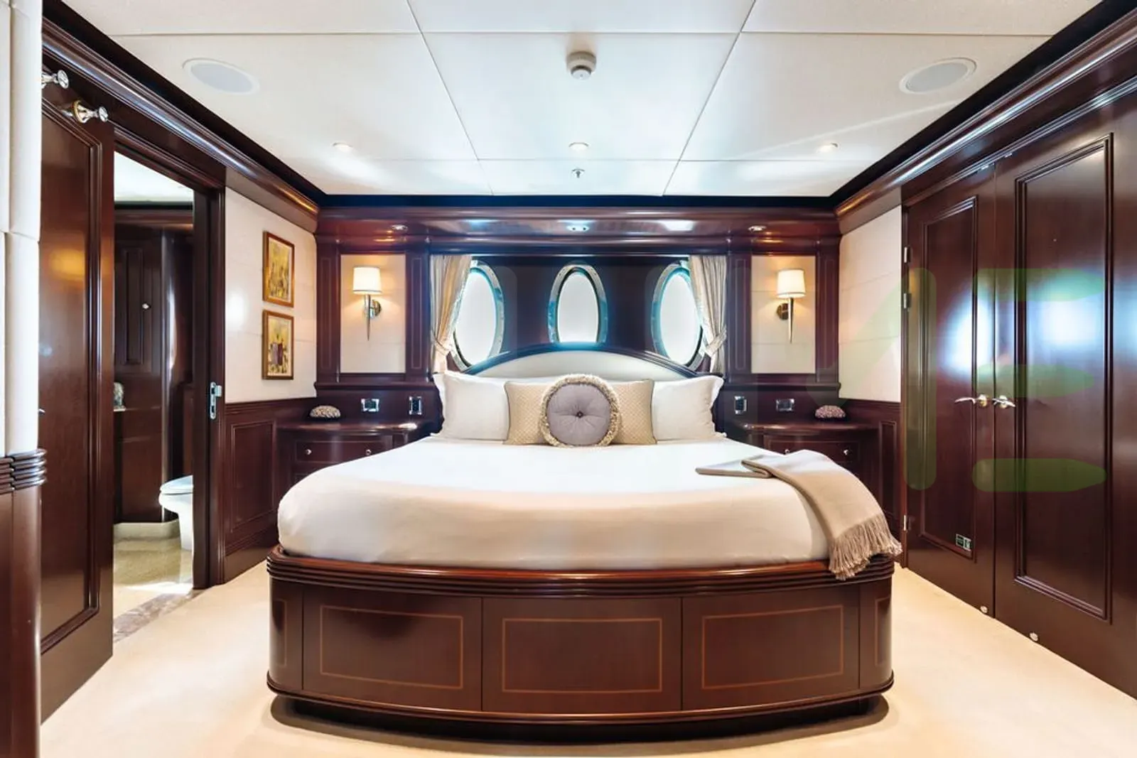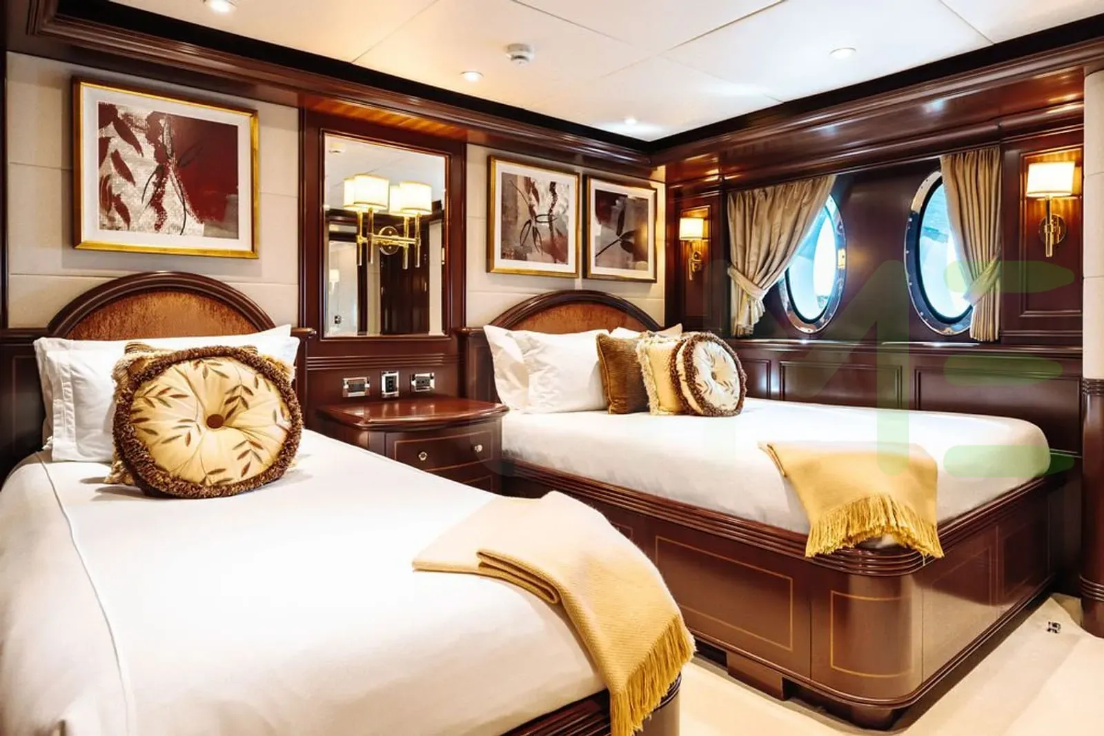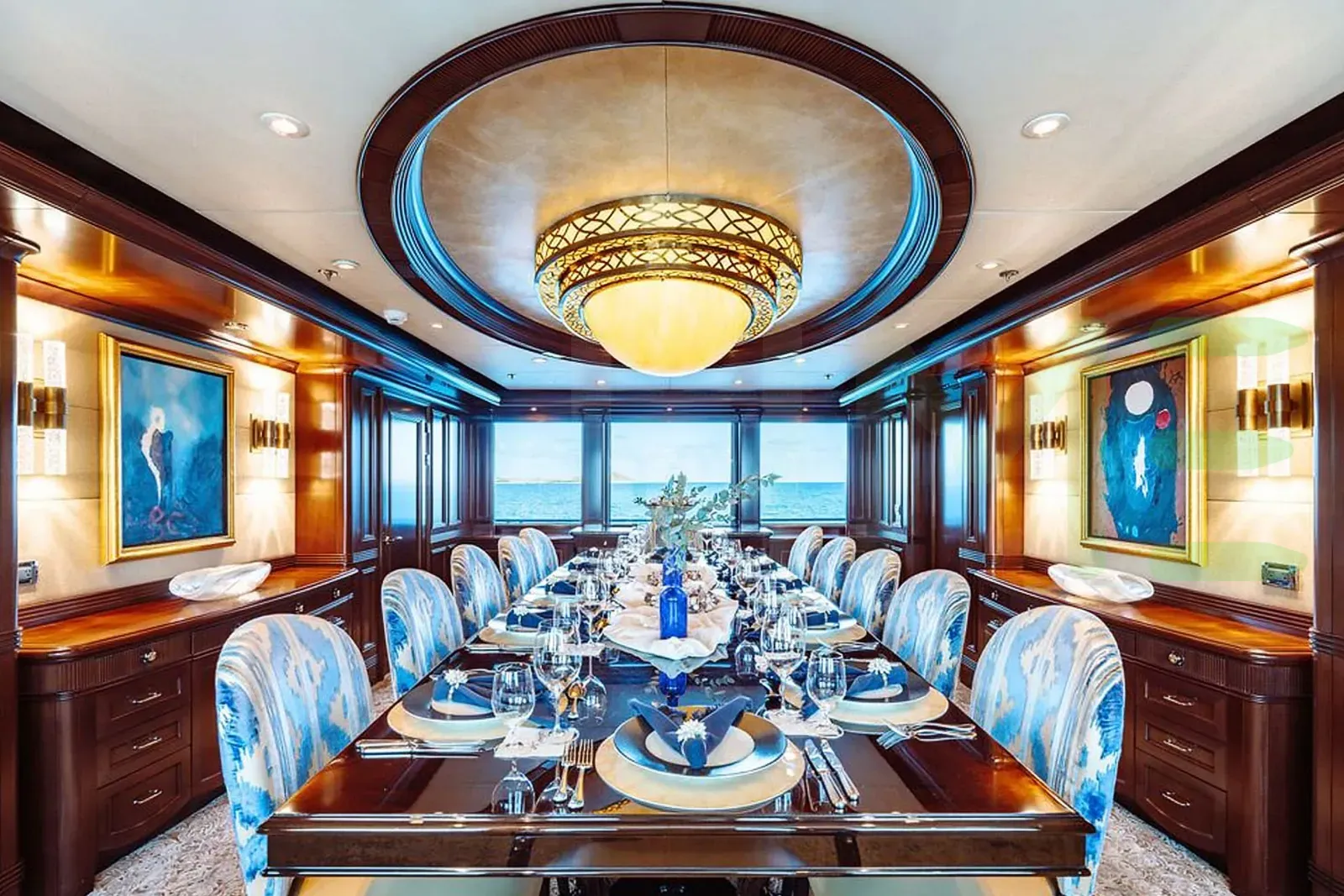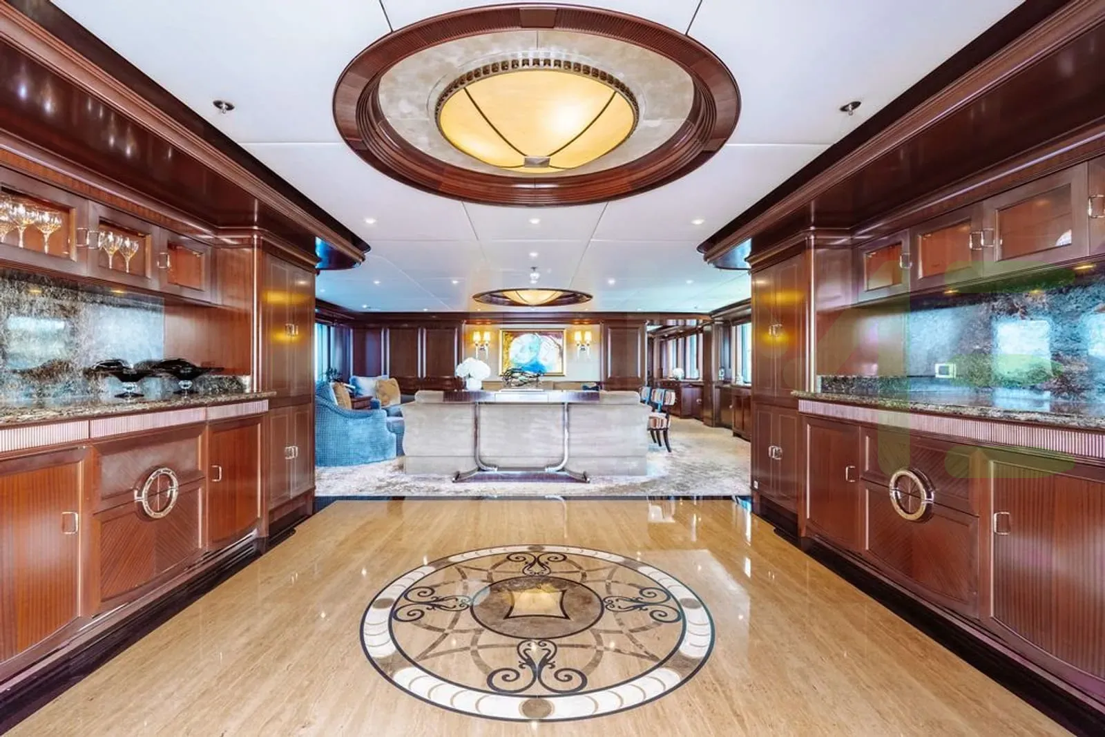 With a gross tonnage of 1,100, the LADY BETH yacht for charter provides ample interior space for enjoyment. LADY BETH offers accommodations for up to 14 guests in 6 lavishly appointed staterooms. She can also carry up to 13 crew onboard, including the Captain, to ensure a relaxed luxury yacht charter experience. The interior design by Bonville Associates exudes a sense of luxury, seamlessly blending comfort with style.