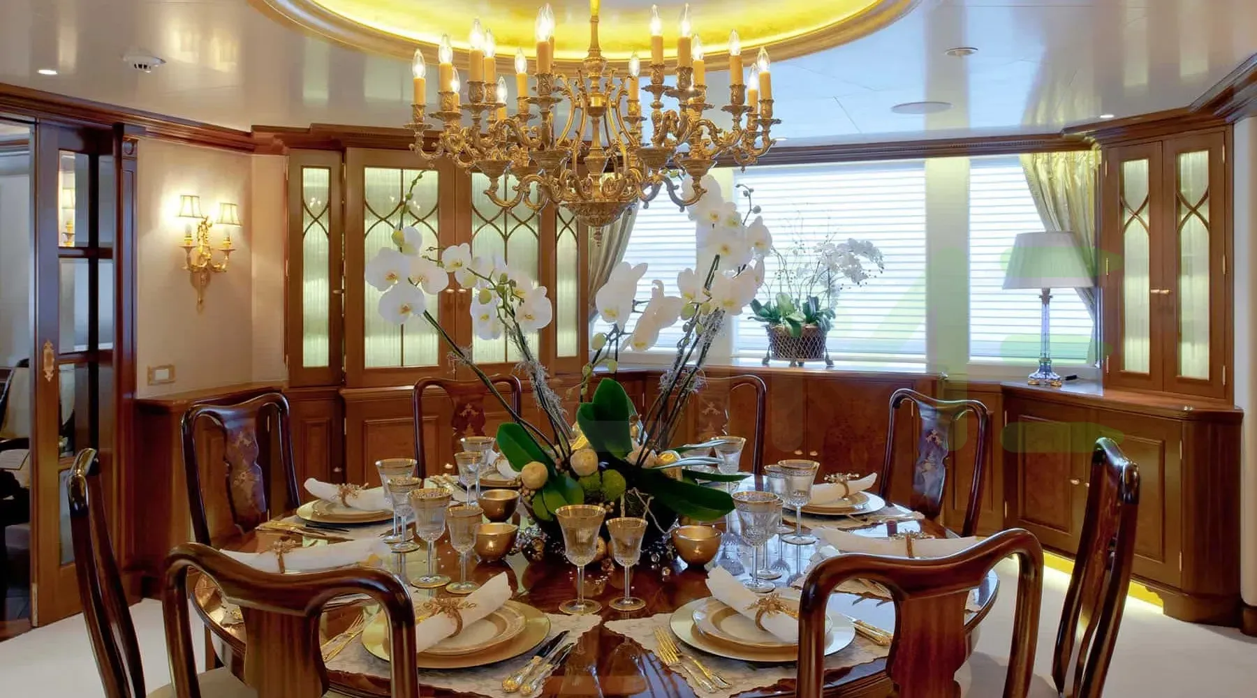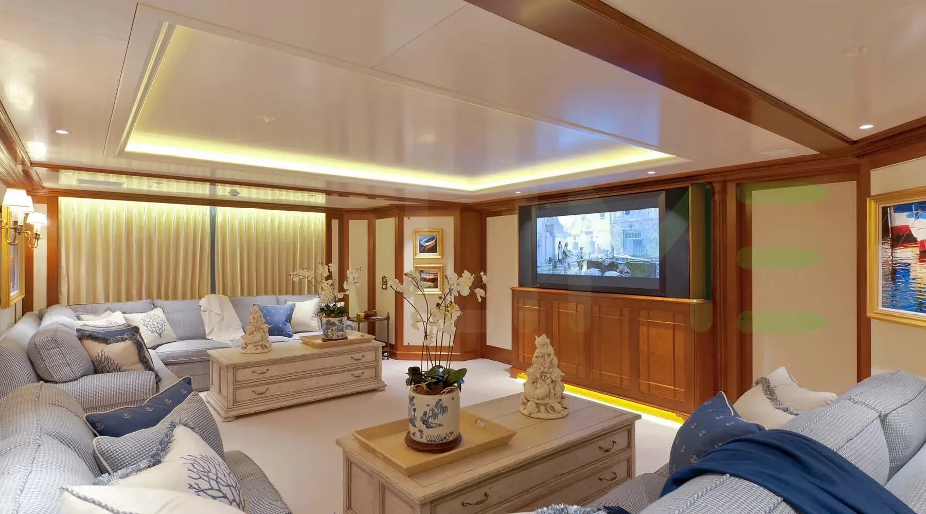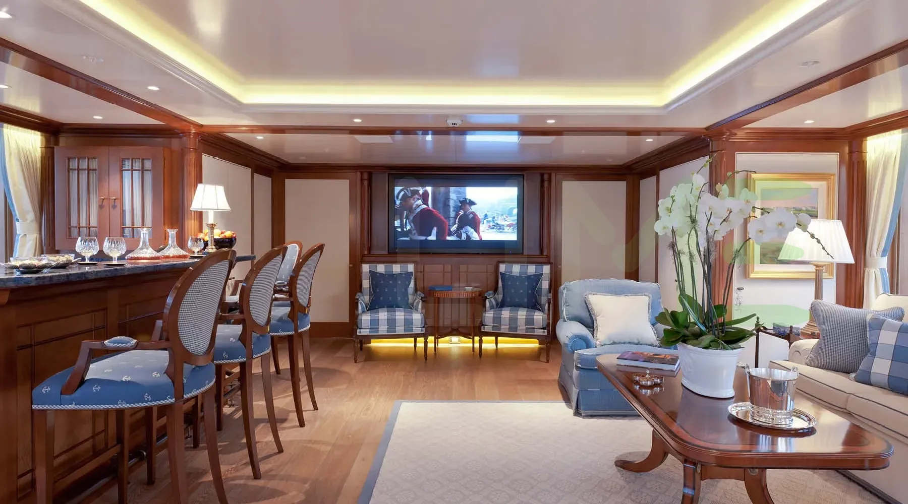 With a gross tonnage of 1,203, the LADY KATHRYN V yacht for charter provides ample interior space for enjoyment. LADY KATHRYN V offers accommodations for up to 12 guests in 6 lavishly appointed staterooms. She can also carry up to 16 crew onboard, including the Captain, to ensure a relaxed luxury yacht charter experience. The interior design by Adam Lay Studio exudes a sense of luxury, seamlessly blending comfort with style.