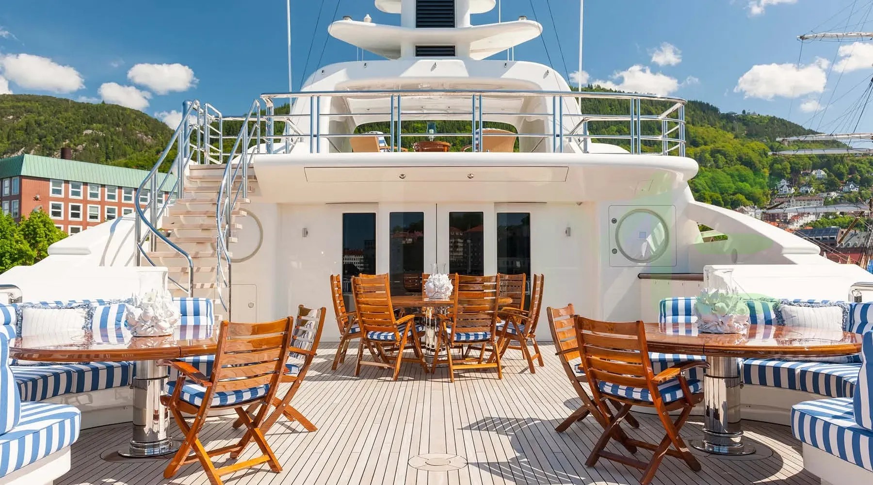 Indulge in the opulent comforts of spacious lounges, gourmet dining areas, and elegantly appointed staterooms. Savor the breathtaking views from the open decks, unwind on a sun lounge, or stay active in the water. For adventure enthusiasts, the LADY KATHRYN V motoryacht is equipped with an array of water toys. Dive into the crystal-clear waters for a refreshing swim, explore hidden coves, or experience the thrill of wakeboarding. With attentive crew members catering to your every need, a yacht charter promises an unforgettable blend of relaxation, luxury, and adventure.