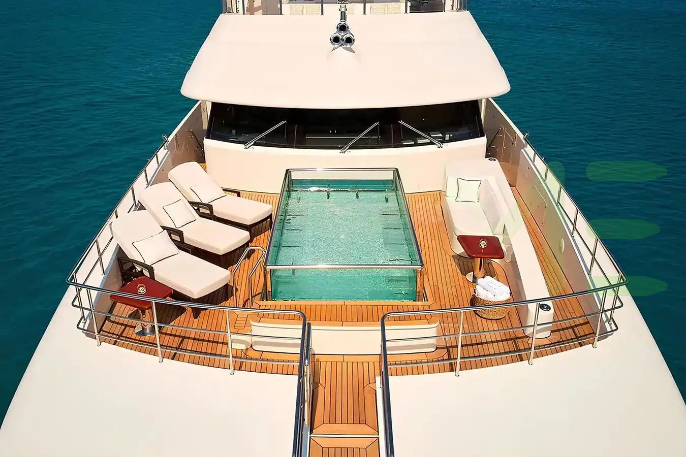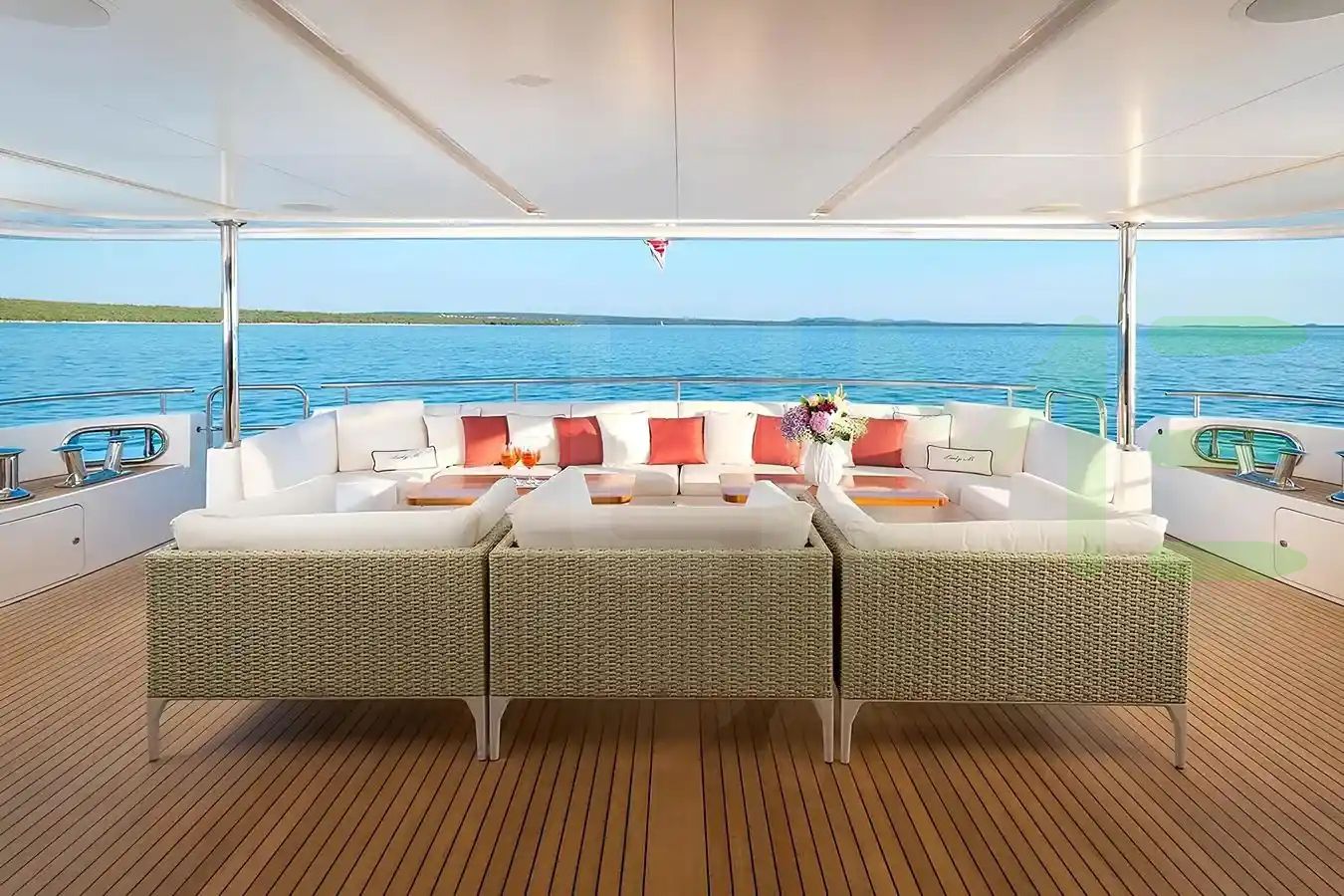 A charter on Lady MRD is comfortable and convenient thanks to the provided amenities, notably the pool, useful to practice your technique or just cool off. Even the most discerning of charter guests will enjoy the included beach club and in addition retreat to the deck jacuzzi and soak up the scenery.