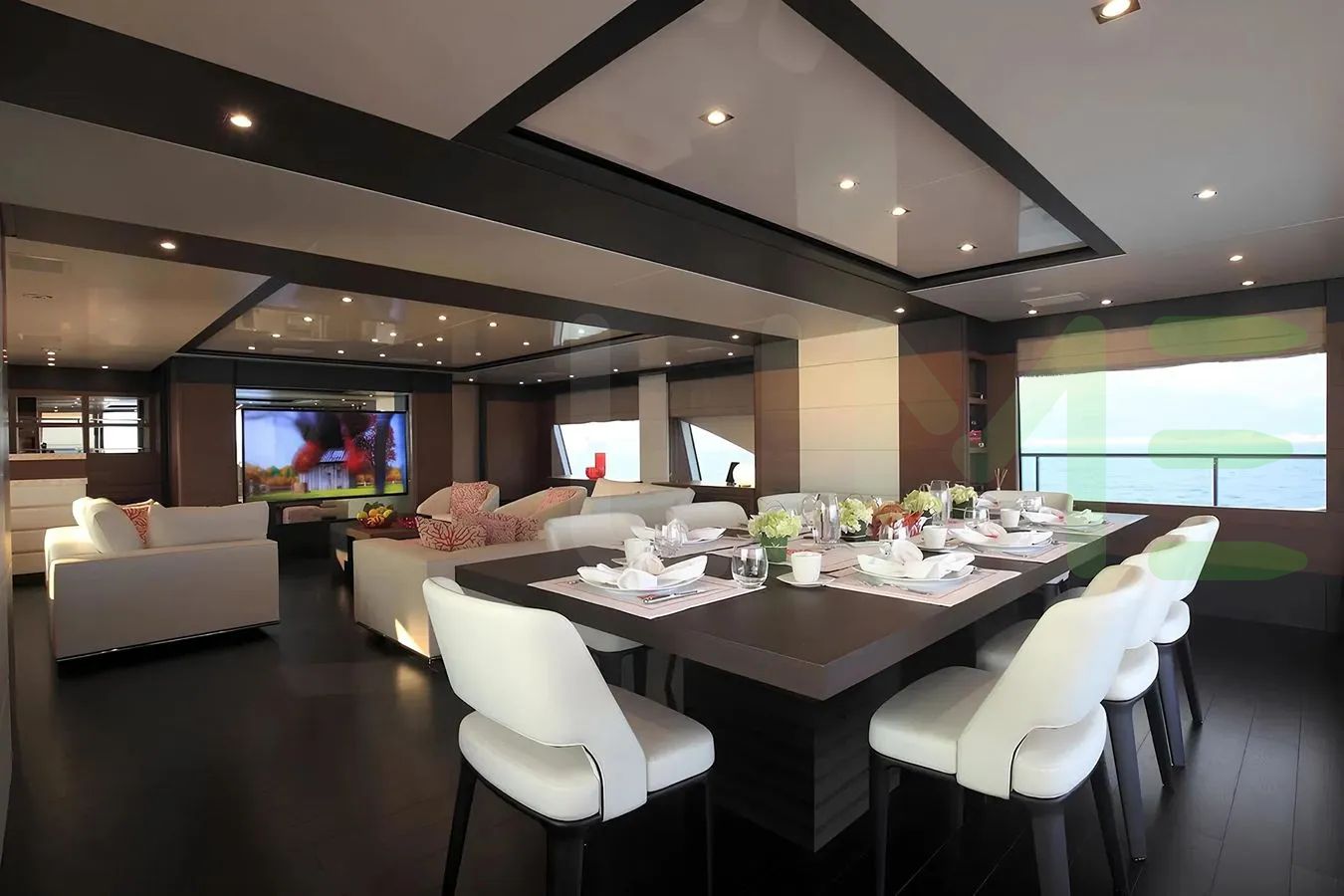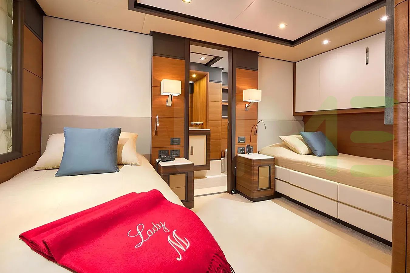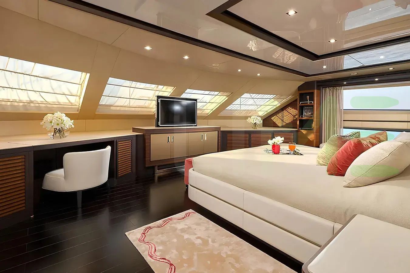 With a gross tonnage of 464, the LADY MRD yacht for charter provides ample interior space for enjoyment. LADY MRD offers accommodations for up to 12 guests in 5 lavishly appointed staterooms. She can also carry up to 8 crew onboard, including the Captain, to ensure a relaxed luxury yacht charter experience. The interior design by Zuretti Interior Design exudes a sense of luxury, seamlessly blending comfort with style.