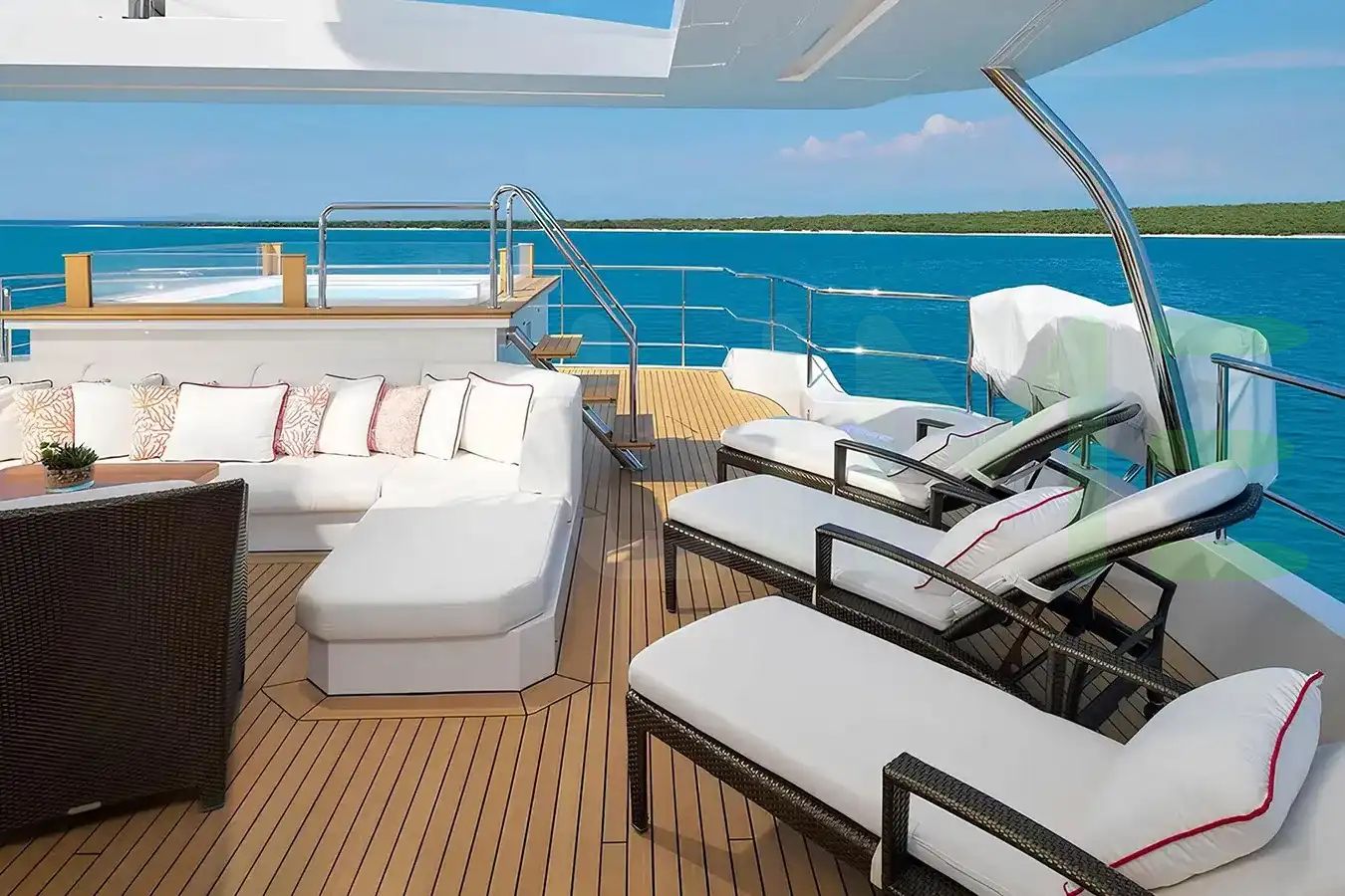 - Extensive sundeck with elevated Jacuzzi, sumptuous loungers and full bar