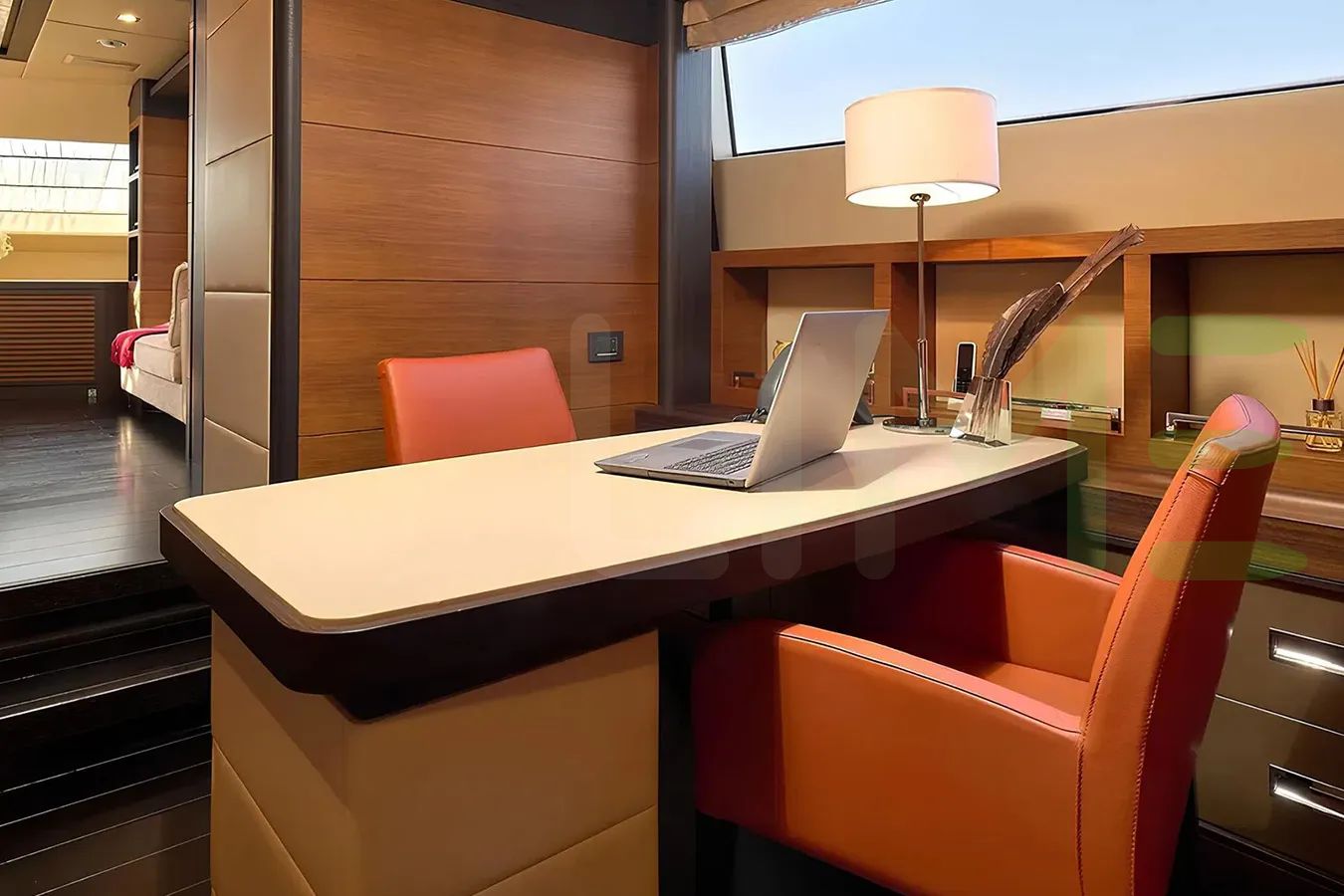 The exterior, designed by Stefano Righini Design, captures your attention with beautiful lines and impeccable craftsmanship. Whether you're lounging on the spacious decks or enjoying water sports in a secluded anchorage, the LADY MRD yacht for charter, built of GRP, offers a wealth of opportunities for relaxation and adventure.