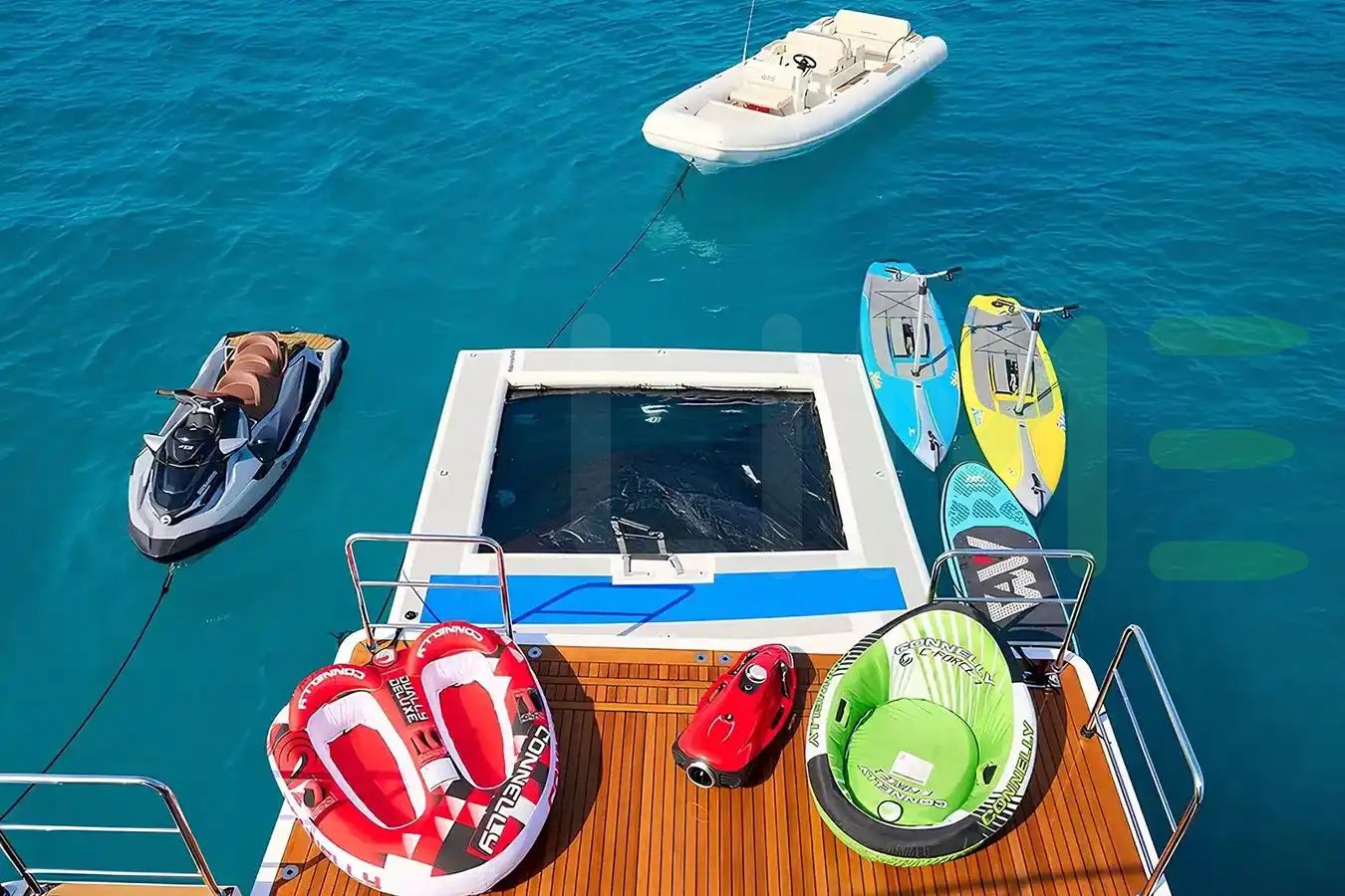 Indulge in the opulent comforts of spacious lounges, gourmet dining areas, and elegantly appointed staterooms. Savor the breathtaking views from the open decks, unwind on a sun lounge, or stay active in the water. For adventure enthusiasts, the LADY MRD motoryacht is equipped with an array of water toys. Dive into the crystal-clear waters for a refreshing swim, explore hidden coves, or experience the thrill of wakeboarding. With attentive crew members catering to your every need, a yacht charter promises an unforgettable blend of relaxation, luxury, and adventure.