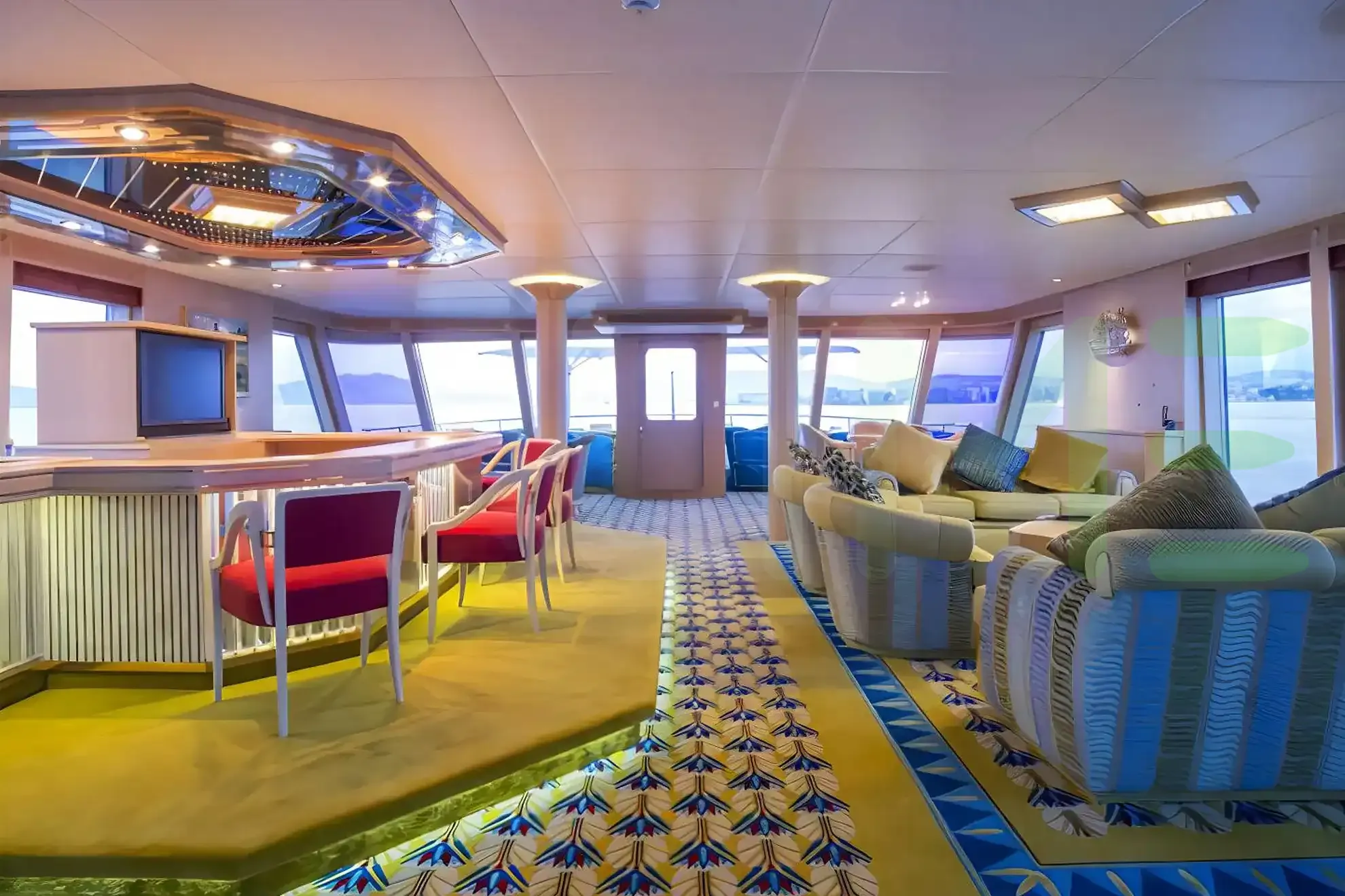 With a gross tonnage of 841, the LE PHARAON yacht for charter provides ample interior space for enjoyment. LE PHARAON offers accommodations for up to 12 guests in 6 lavishly appointed staterooms. She can also carry up to 11 crew onboard, including the Captain, to ensure a relaxed luxury yacht charter experience. The interior design by Larvor, Luxury Projects exudes a sense of luxury, seamlessly blending comfort with style.