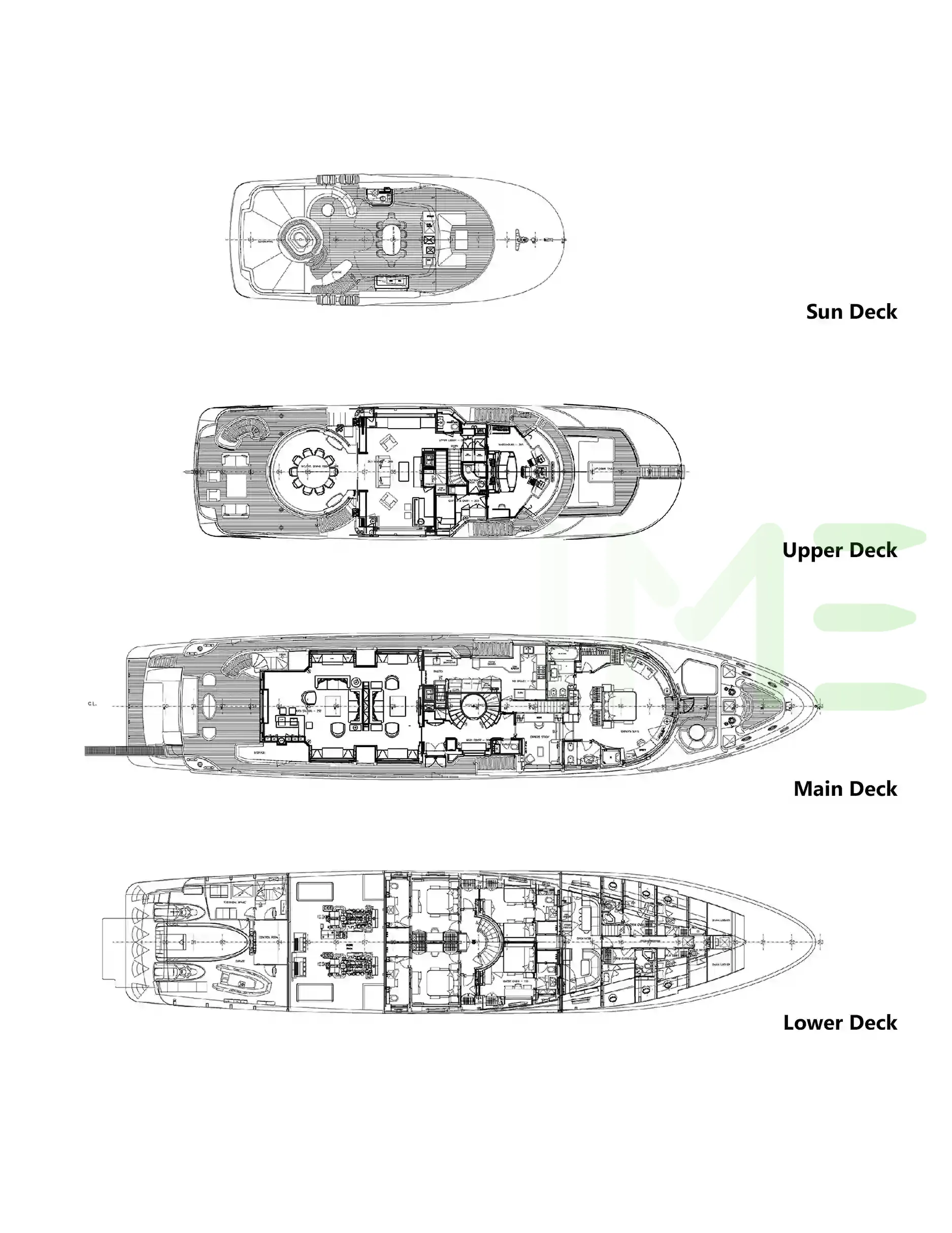 Request plans that include the layout of staterooms, guest areas, and outdoor spaces, as well as crew quarters and work areas.