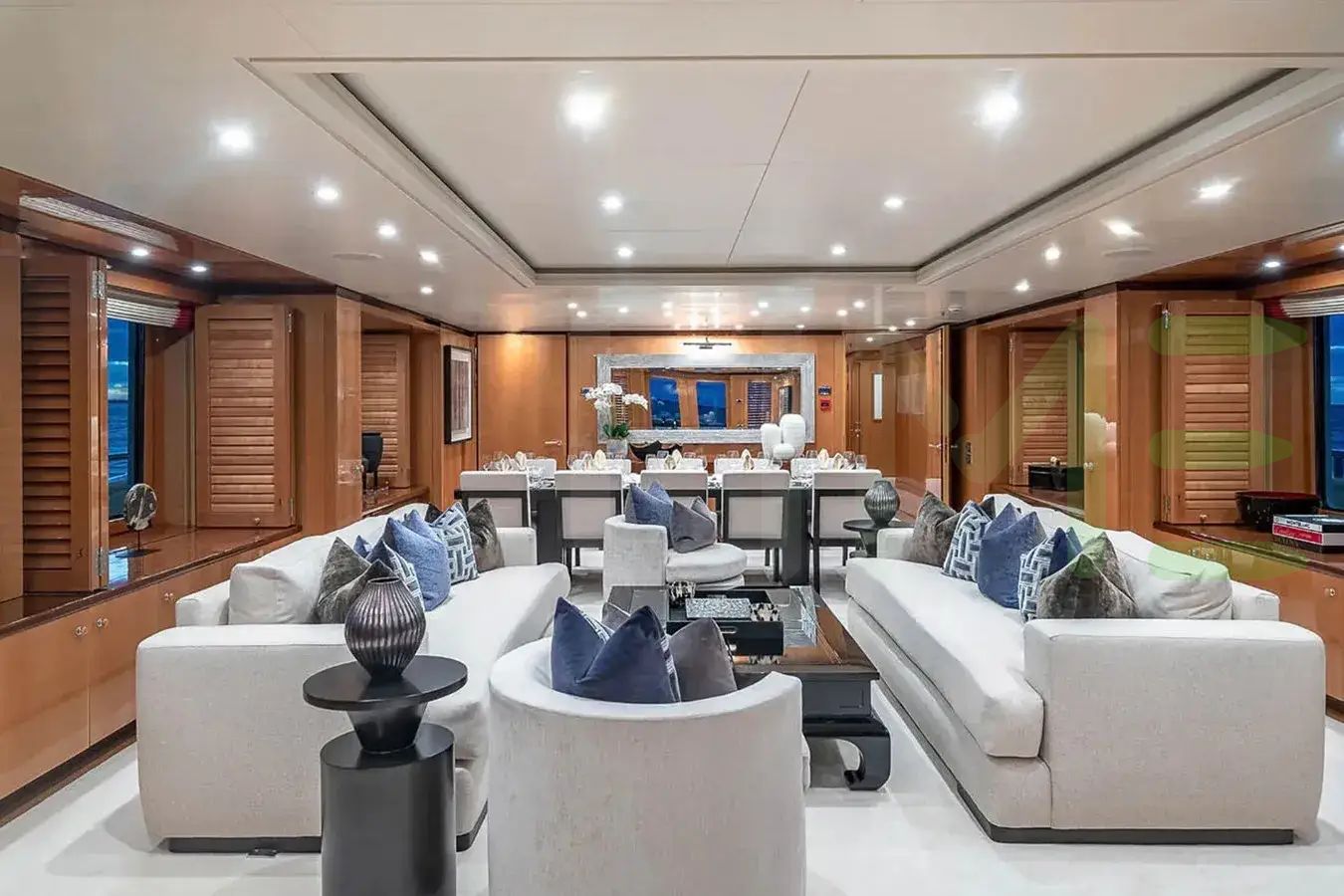 With a gross tonnage of 645, the LIND yacht for charter provides ample interior space for enjoyment. LIND offers accommodations for up to 11 guests in 5 lavishly appointed staterooms. She can also carry up to 13 crew onboard, including the Captain, to ensure a relaxed luxury yacht charter experience. The interior design by Studio Laura Sessa exudes a sense of luxury, seamlessly blending comfort with style.