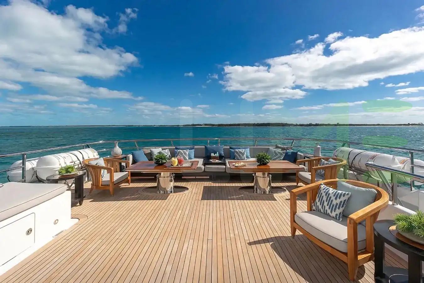 The exterior, designed by Tim Heywood Design Ltd., captures your attention with beautiful lines and impeccable craftsmanship. Whether you're lounging on the spacious decks or enjoying water sports in a secluded anchorage, the LIND yacht for charter, built of Steel and Aluminium, offers a wealth of opportunities for relaxation and adventure.