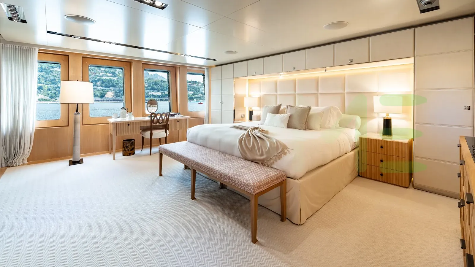 With a gross tonnage of 1,295, the LOON yacht for charter provides ample interior space for enjoyment. LOON offers accommodations for up to 13 guests in 7 lavishly appointed staterooms. She can also carry up to 19 crew onboard, including the Captain, to ensure a relaxed luxury yacht charter experience. The interior design by Studio Linse, Bryan O'Sullivan Studio exudes a sense of luxury, seamlessly blending comfort with style.