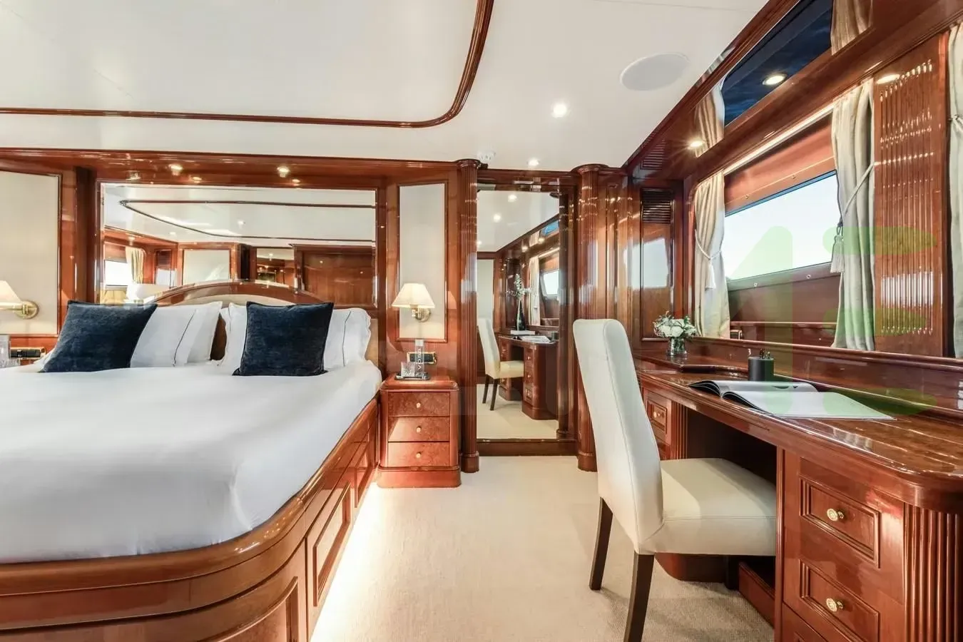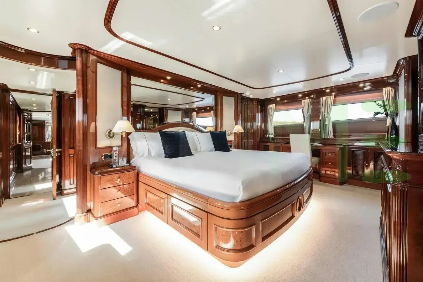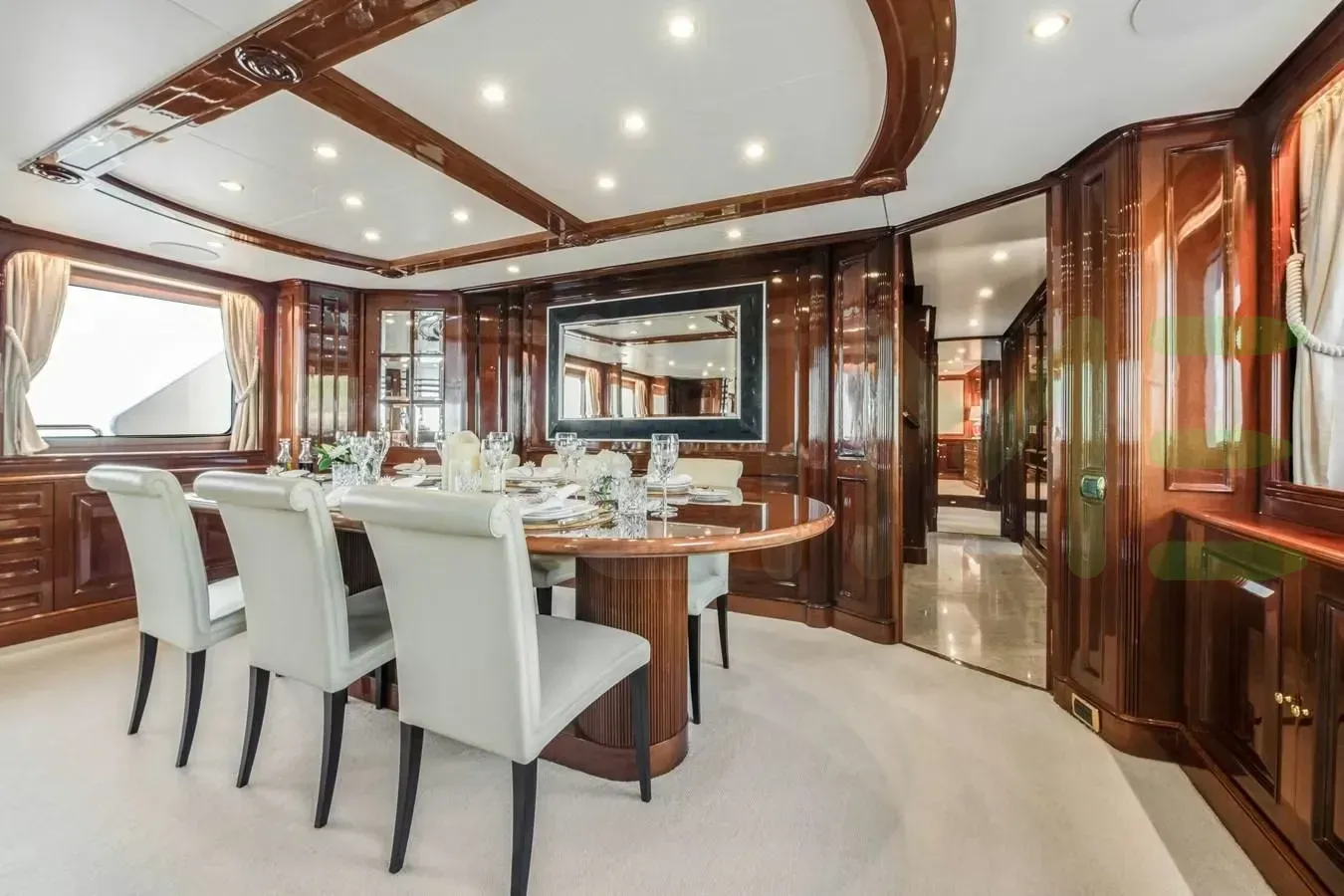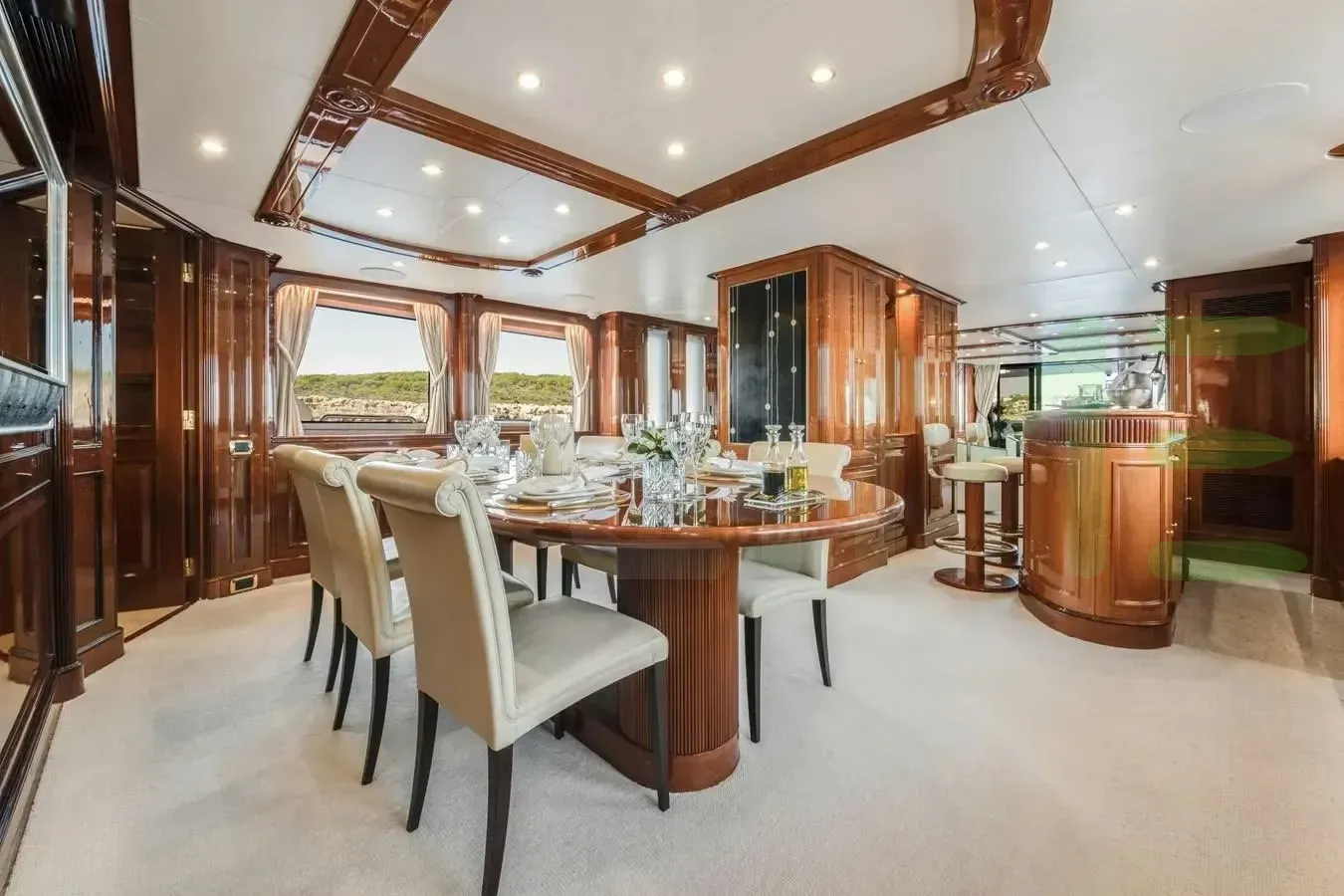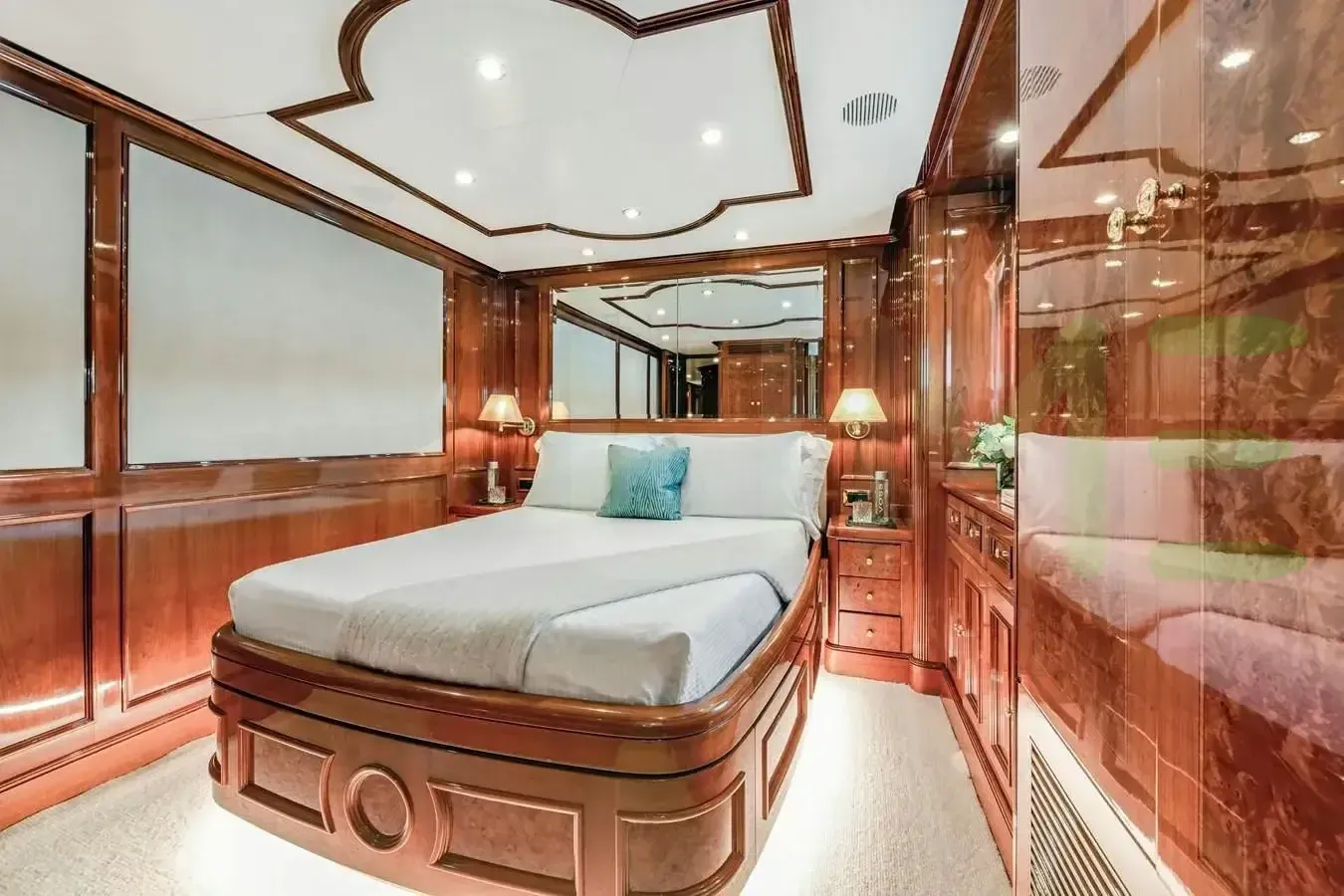 With a gross tonnage of 247, the LOULOU yacht for charter provides ample interior space for enjoyment. LOULOU offers accommodations for up to 10 guests in 5 lavishly appointed staterooms. She can also carry up to 7 crew onboard, including the Captain, to ensure a relaxed luxury yacht charter experience. The interior design by Zuretti Interior Design, Karen Lynn Interiors exudes a sense of luxury, seamlessly blending comfort with style.