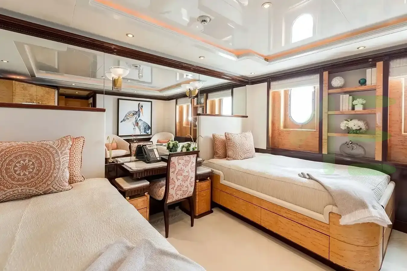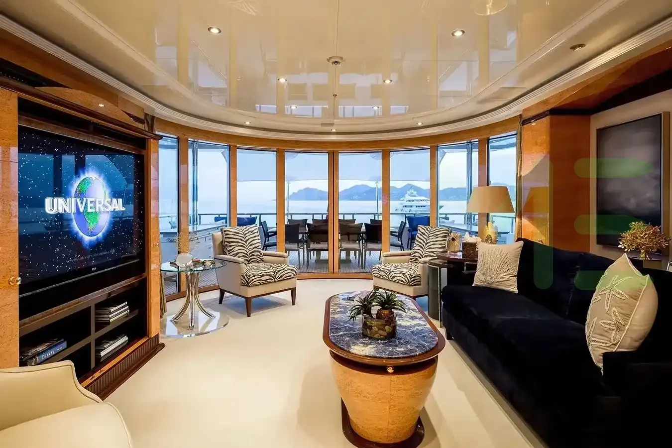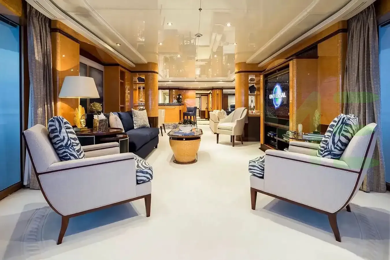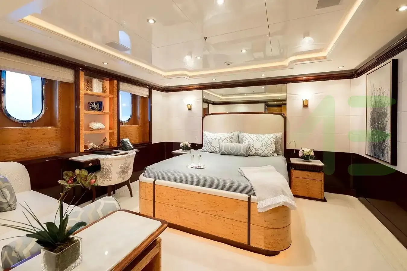 With a gross tonnage of 1,083, the LUCKY LADY yacht for charter provides ample interior space for enjoyment. LUCKY LADY offers accommodations for up to 10 guests in 5 lavishly appointed staterooms. She can also carry up to 15 crew onboard, including the Captain, to ensure a relaxed luxury yacht charter experience. The interior design by Zuretti Interior Design exudes a sense of luxury, seamlessly blending comfort with style.