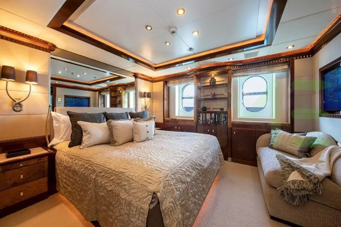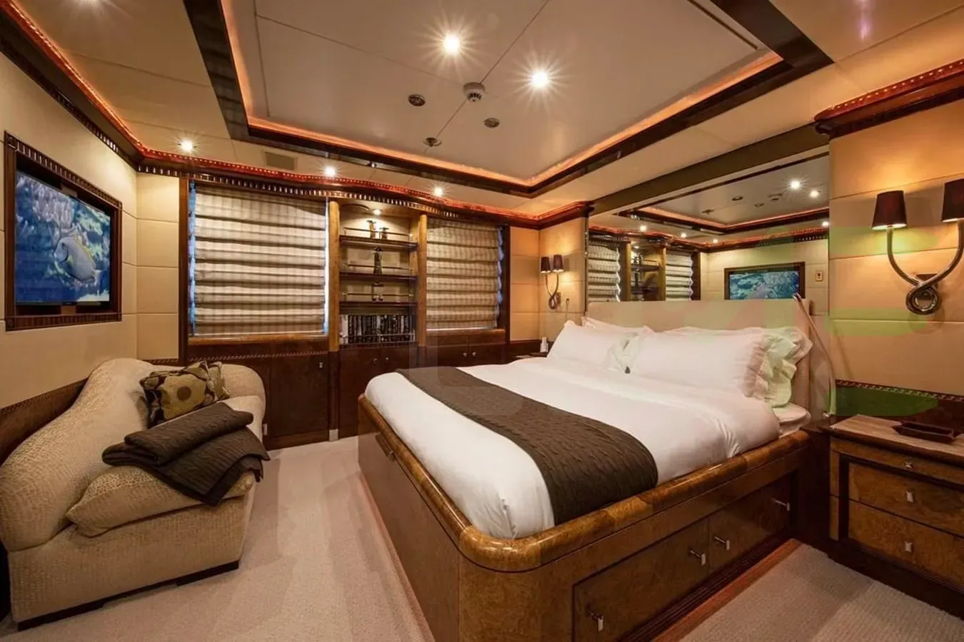 With a gross tonnage of 1,166, the LUDZIE yacht for charter provides ample interior space for enjoyment. LUDZIE offers accommodations for up to 12 guests . She can also carry up to 13 crew onboard, including the Captain, to ensure a relaxed luxury yacht charter experience. The interior design by Zuretti Interior Design exudes a sense of luxury, seamlessly blending comfort with style.