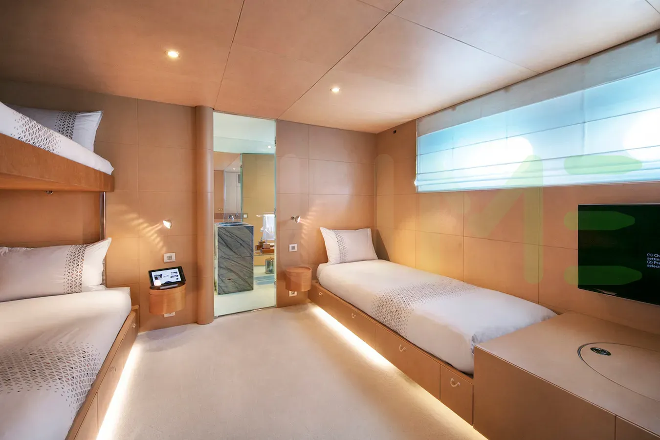 With a gross tonnage of 466, the LUISA yacht for charter provides ample interior space for enjoyment. LUISA offers accommodations for up to 10 guests in 5 lavishly appointed staterooms. She can also carry up to 9 crew onboard, including the Captain, to ensure a relaxed luxury yacht charter experience. The interior design by Gregotti Associati International, Porfiristudio exudes a sense of luxury, seamlessly blending comfort with style.