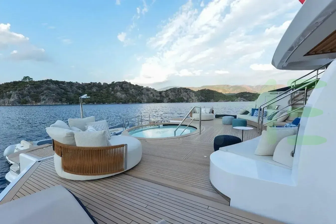 A charter on Lumiere is comfortable and convenient thanks to the provided amenities, particularly a deck jacuzzi, perfect to enjoy the scenery with your favourite drink in hand.