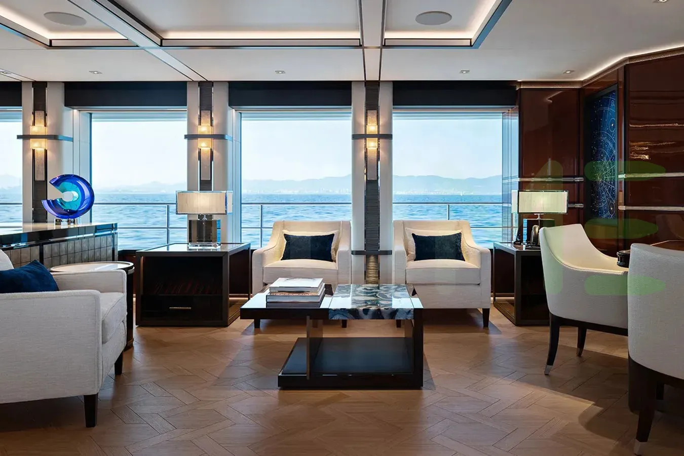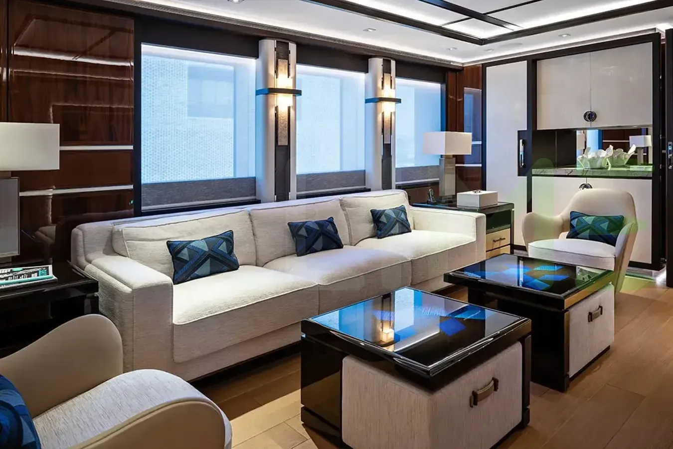 With a gross tonnage of 1,060, the LUSINE yacht for charter provides ample interior space for enjoyment. LUSINE offers accommodations for up to 16 guests in 8 lavishly appointed staterooms. She can also carry up to 15 crew onboard, including the Captain, to ensure a relaxed luxury yacht charter experience. The interior design by Sinot Yacht Architecture & Design exudes a sense of luxury, seamlessly blending comfort with style.
