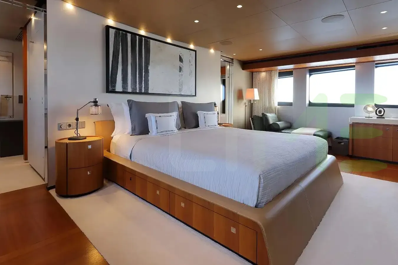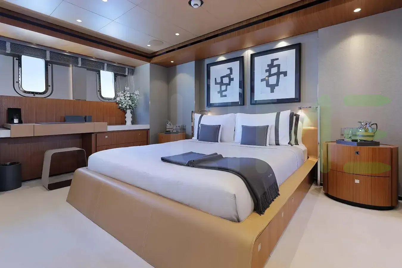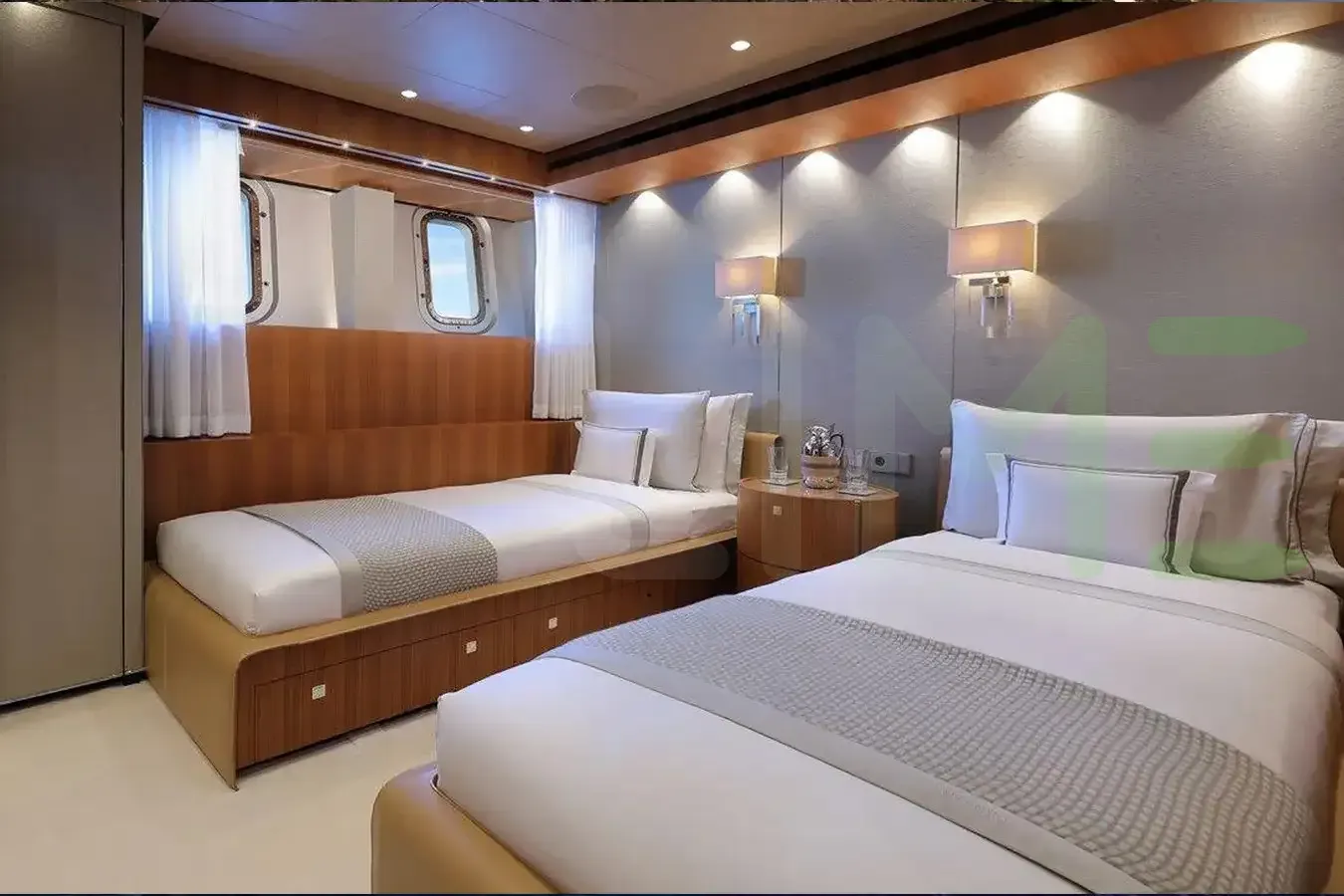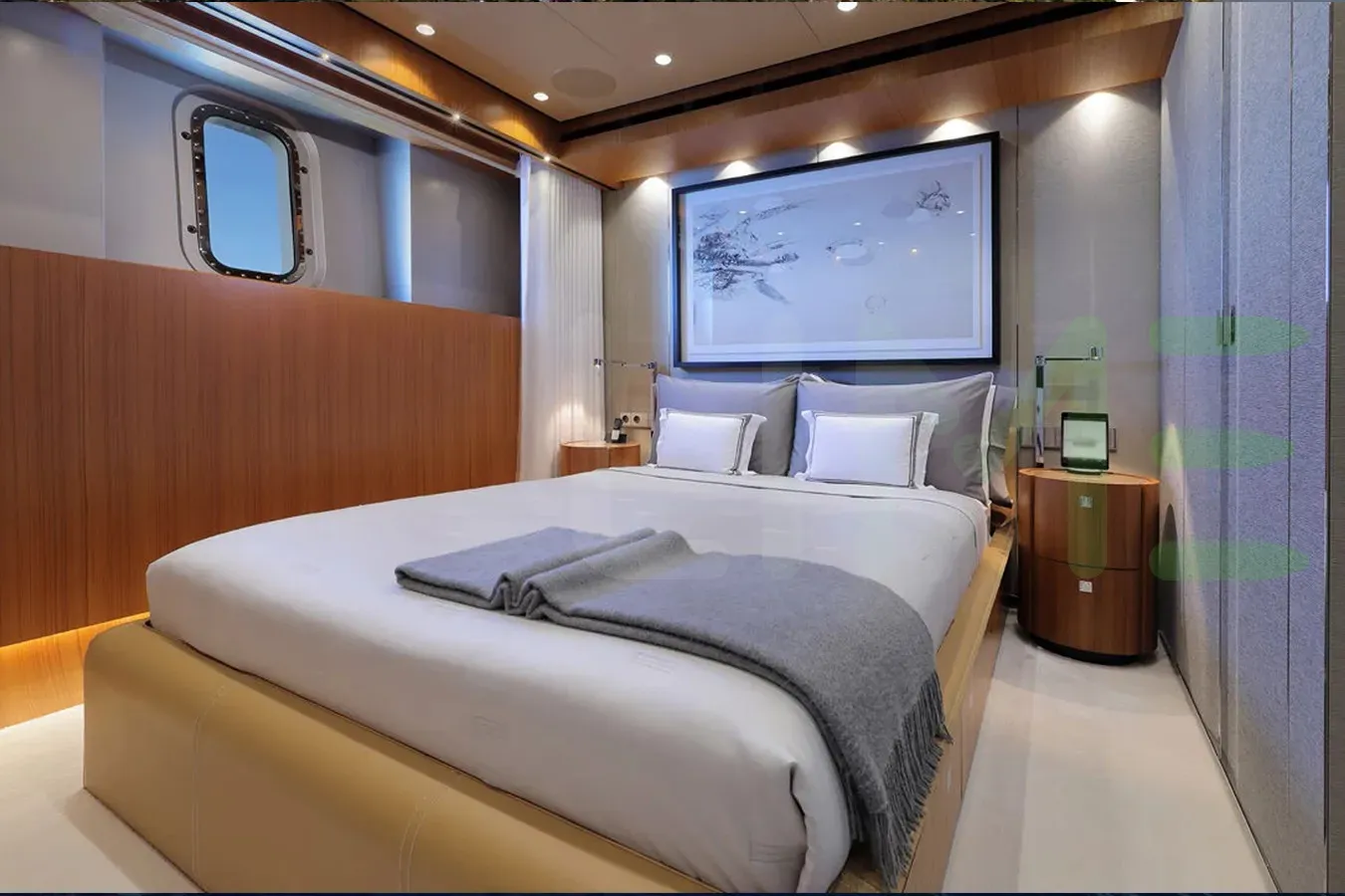 With a gross tonnage of 497, the MADO yacht for charter provides ample interior space for enjoyment. MADO offers accommodations for up to 12 guests in 6 lavishly appointed staterooms. She can also carry up to 10 crew onboard, including the Captain, to ensure a relaxed luxury yacht charter experience. The interior design by Francesco Paszkowski, FM Architettura exudes a sense of luxury, seamlessly blending comfort with style.